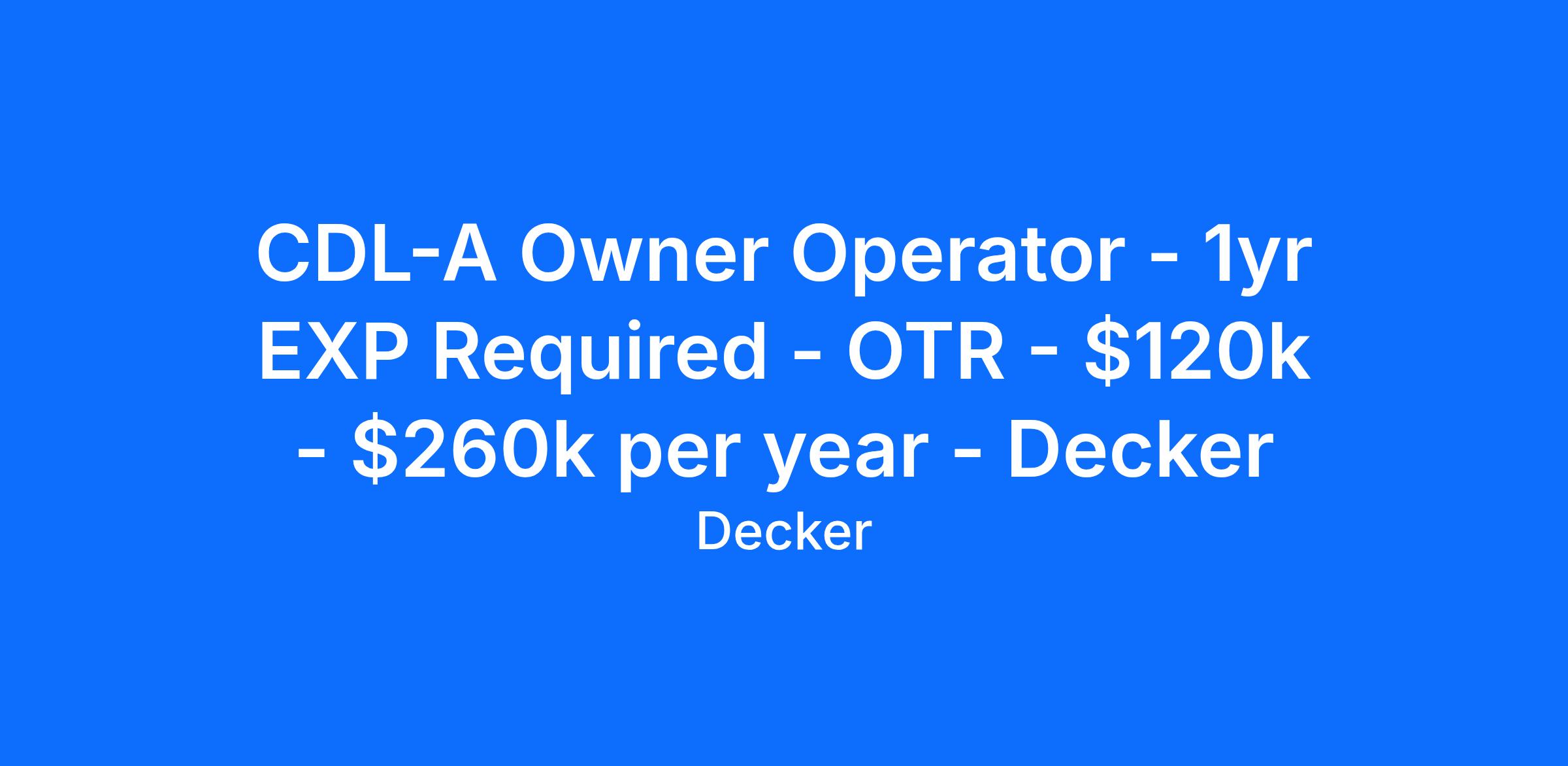 CDL-A Owner Operator - 1yr EXP Required - OTR - $120k - $260k per year - Decker