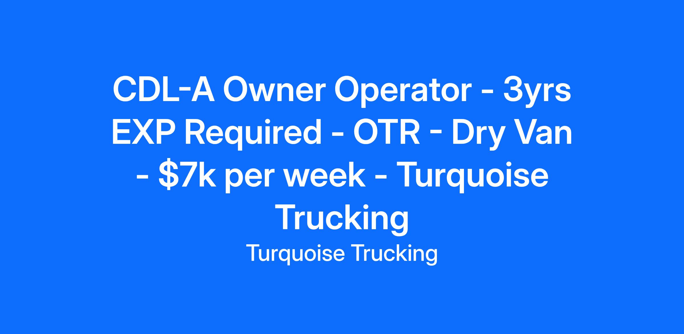 CDL-A Owner Operator - 3yrs EXP Required - OTR - Dry Van - $7k per week - Turquoise Trucking