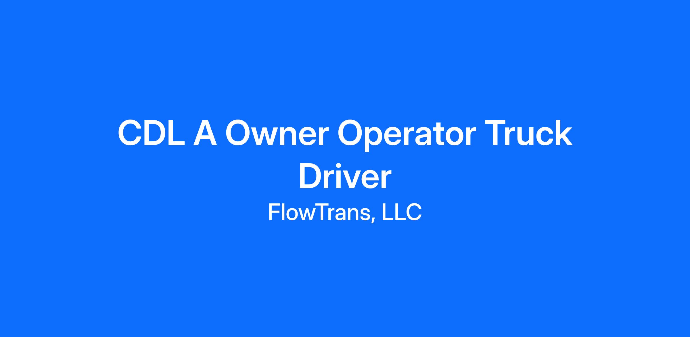 Owner Operators: Experienced Class A Truck Driver business opportunity open now!
