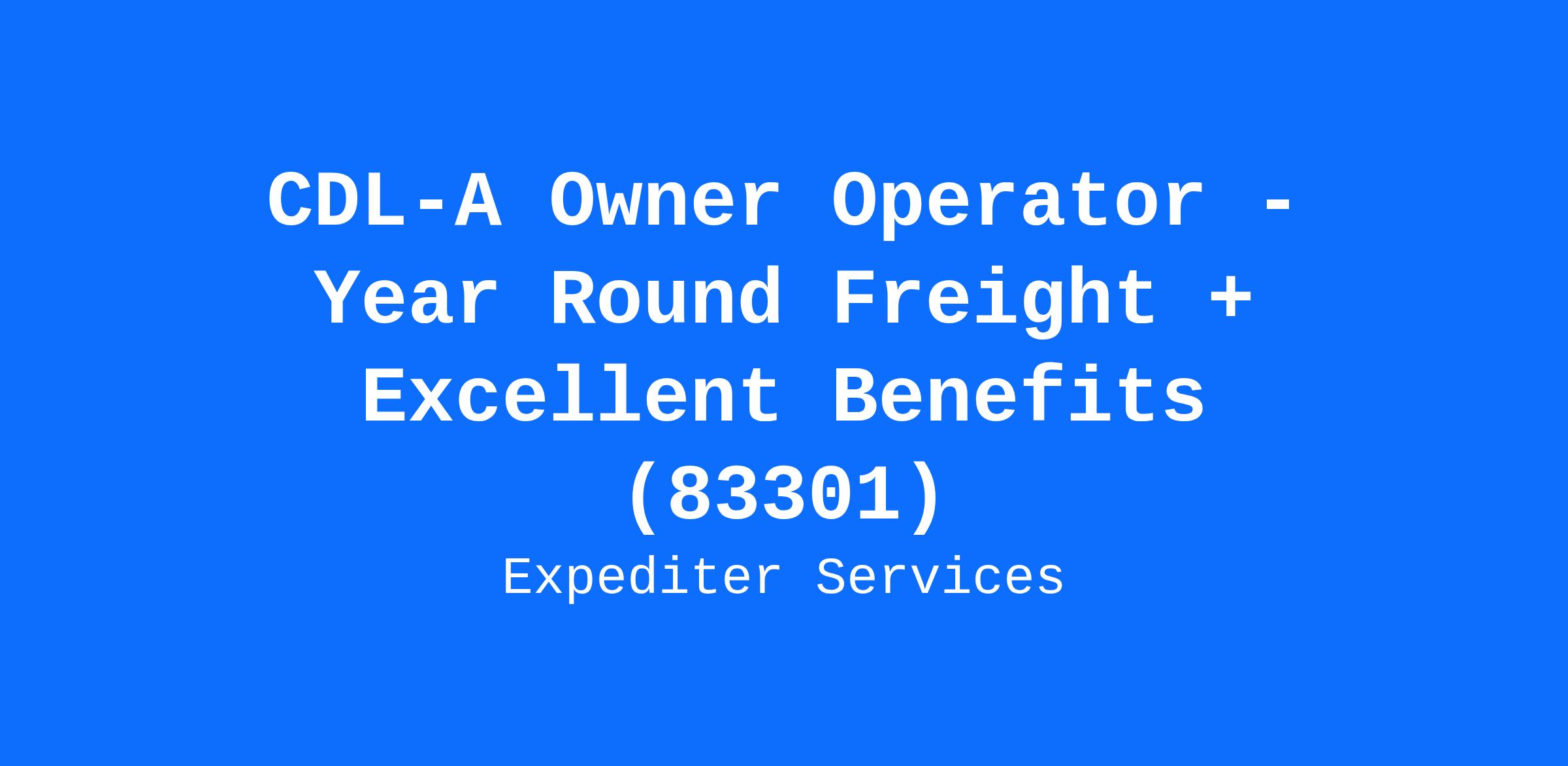 CDL-A Owner Operator - Year Round Freight + Excellent Benefits (83301)