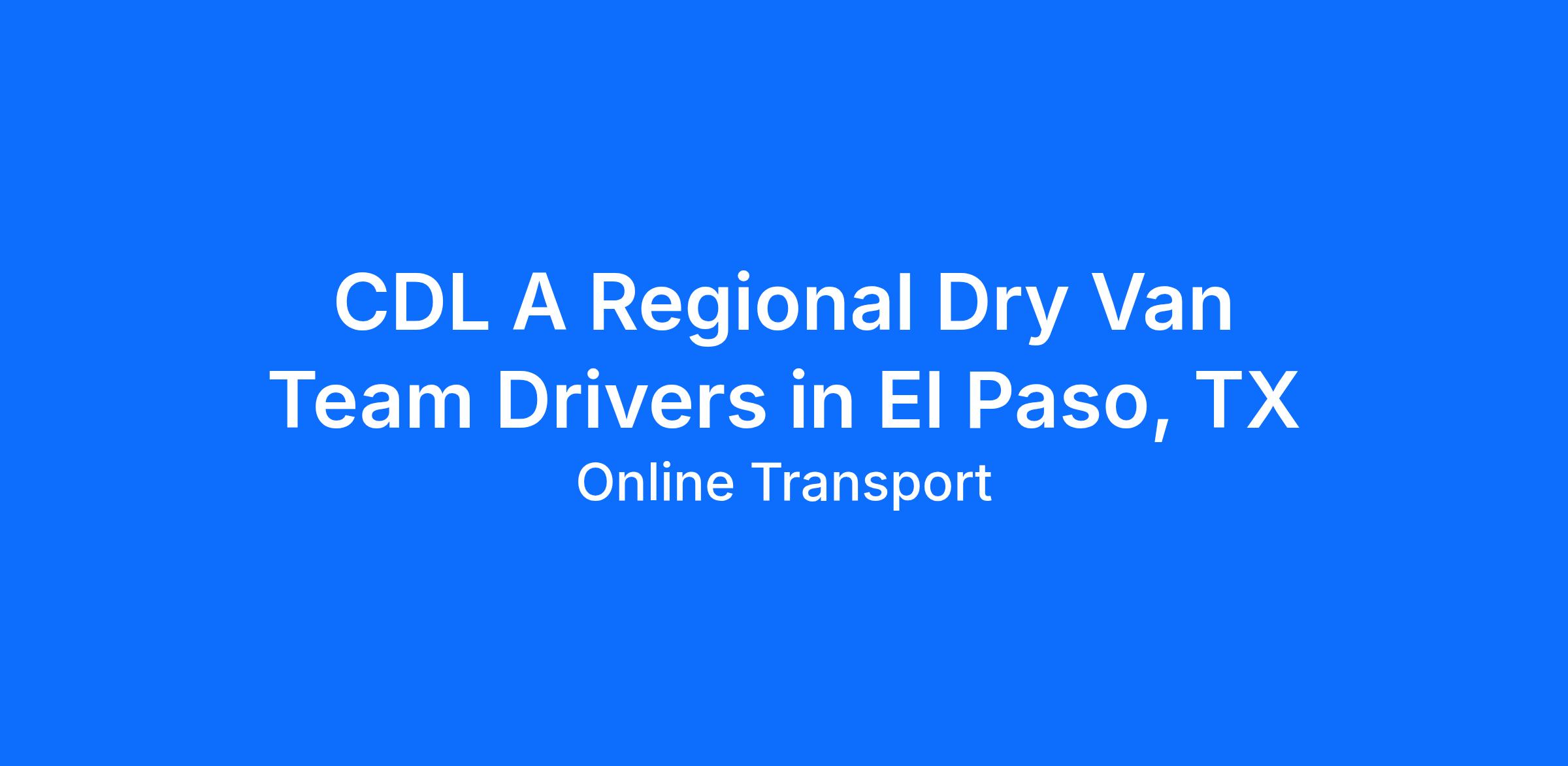CDL A established driver teams or solo drivers willing to team in El Paso, TX. Drivers will be hauling automotive freight in 53ft dry van trailers. Online Transport offers an environment centered around family and our drivers always come first. Our drivers find the perfect combination of quality home time and pay. We are looking for professional and qualified CDL-A Truck Drivers to help support our growing and diverse Dry Van customer base. The primary operating area is El Paso, TX, Midwest, Colorado, Nevada, Arizona and California.
