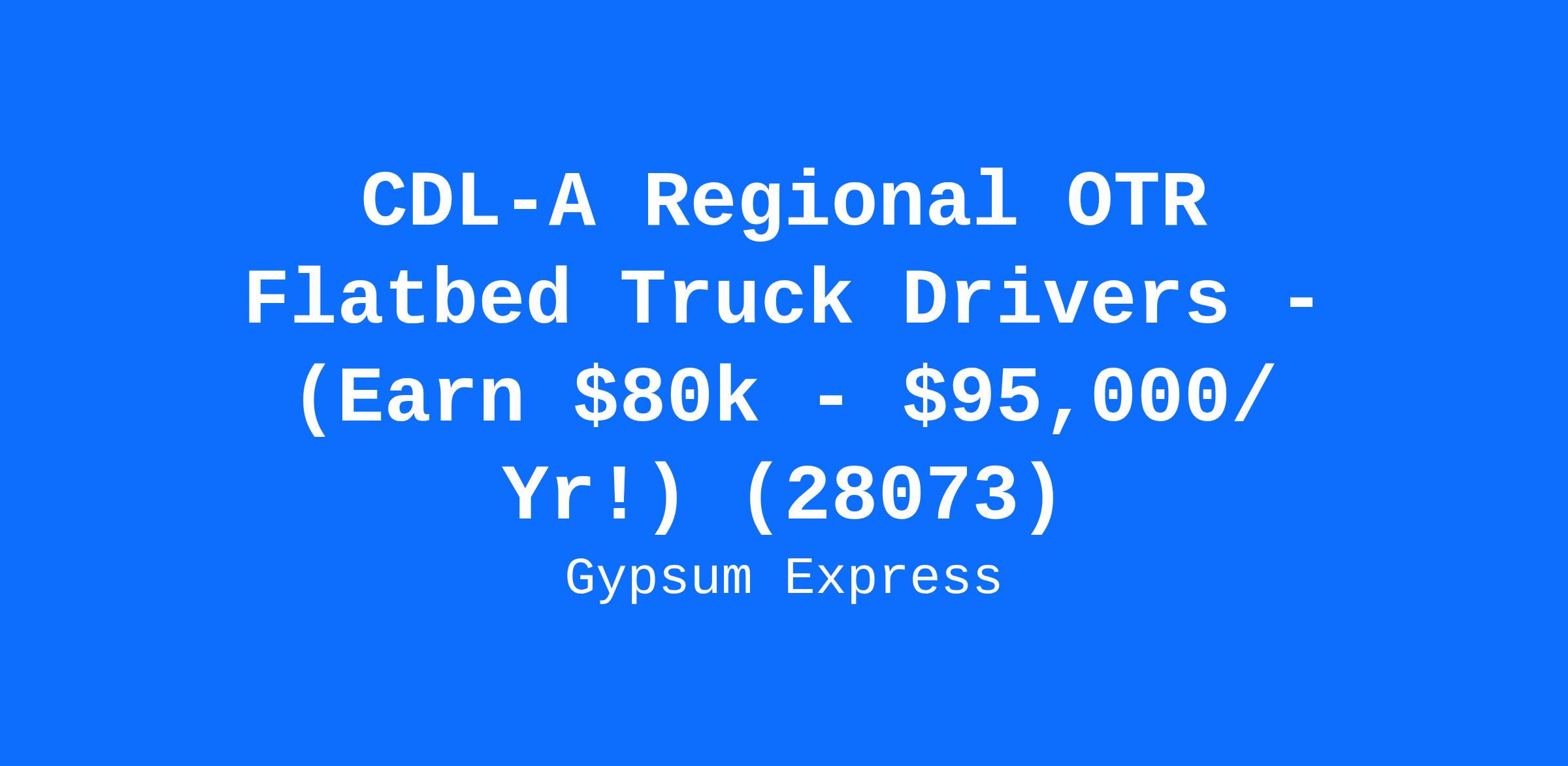 CDL-A Regional OTR Flatbed Truck Drivers - (Earn $80k - $95,000/ Yr!) (28073)