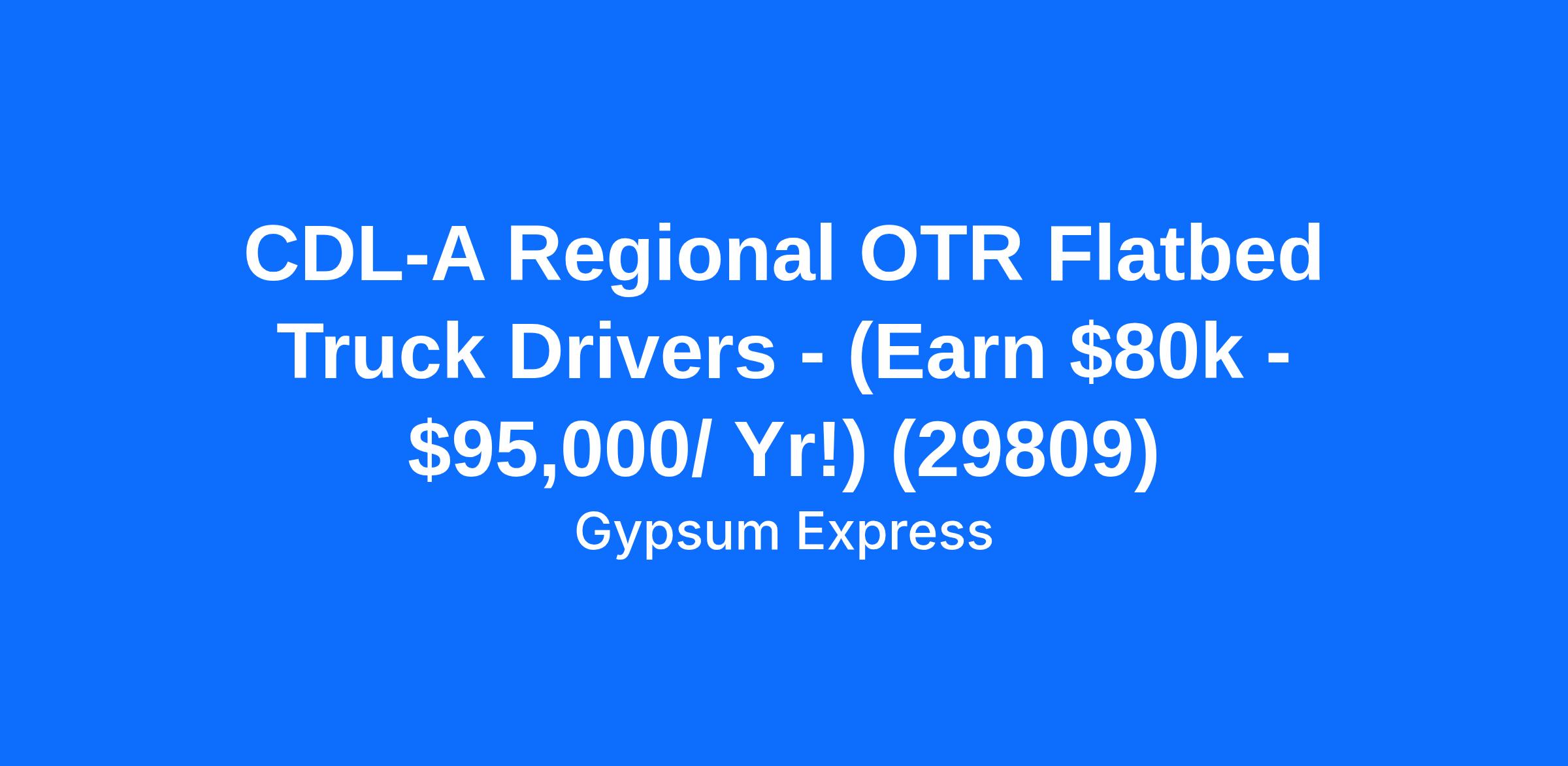 CDL-A Regional OTR Flatbed Truck Drivers - (Earn $80k - $95,000/ Yr!) (29809)