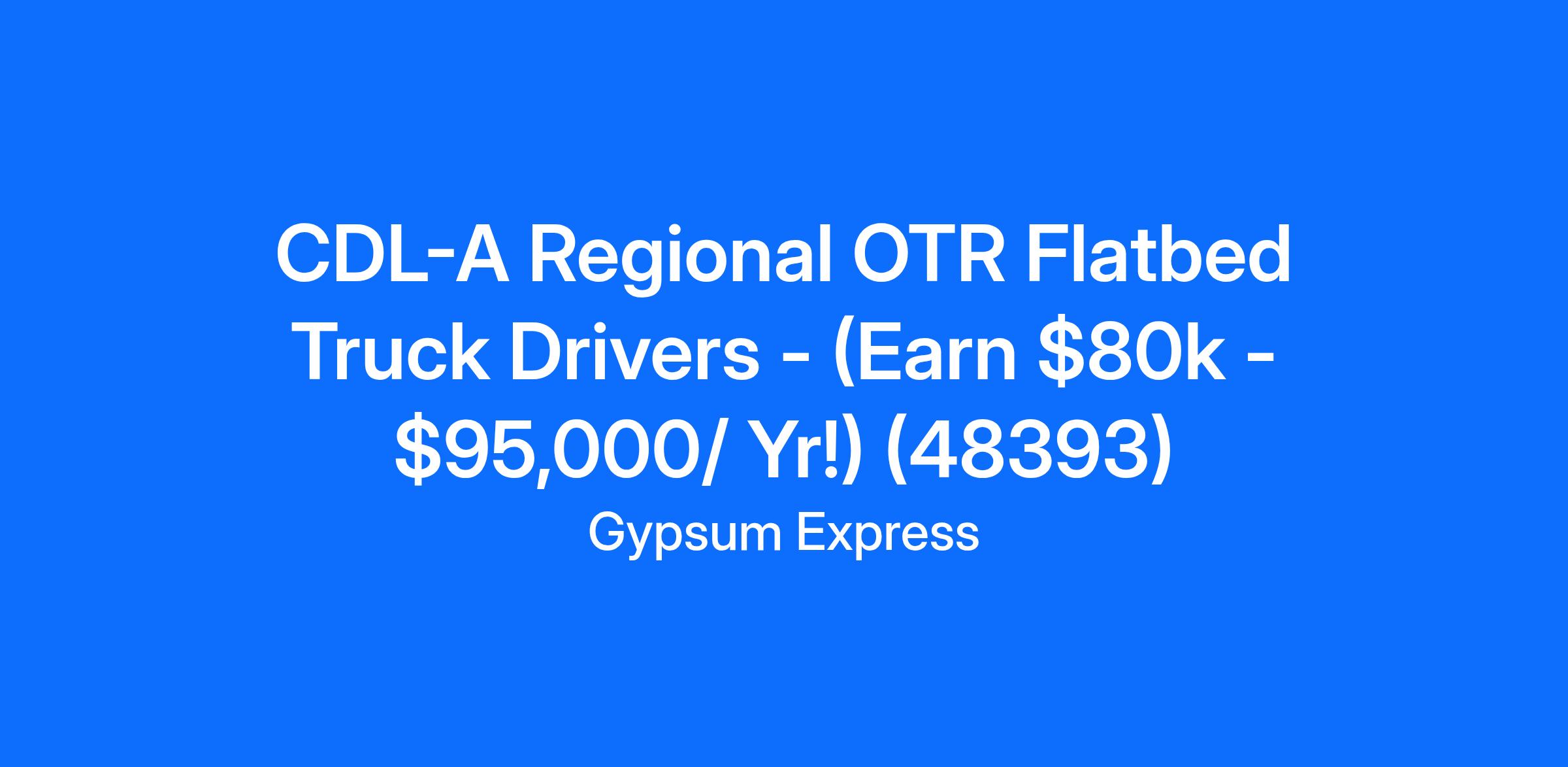 Gypsum Express is now hiring for Regional OTR CDL-A Flatbed Truck Drivers. Recent grads with no experience are welcome to apply!
