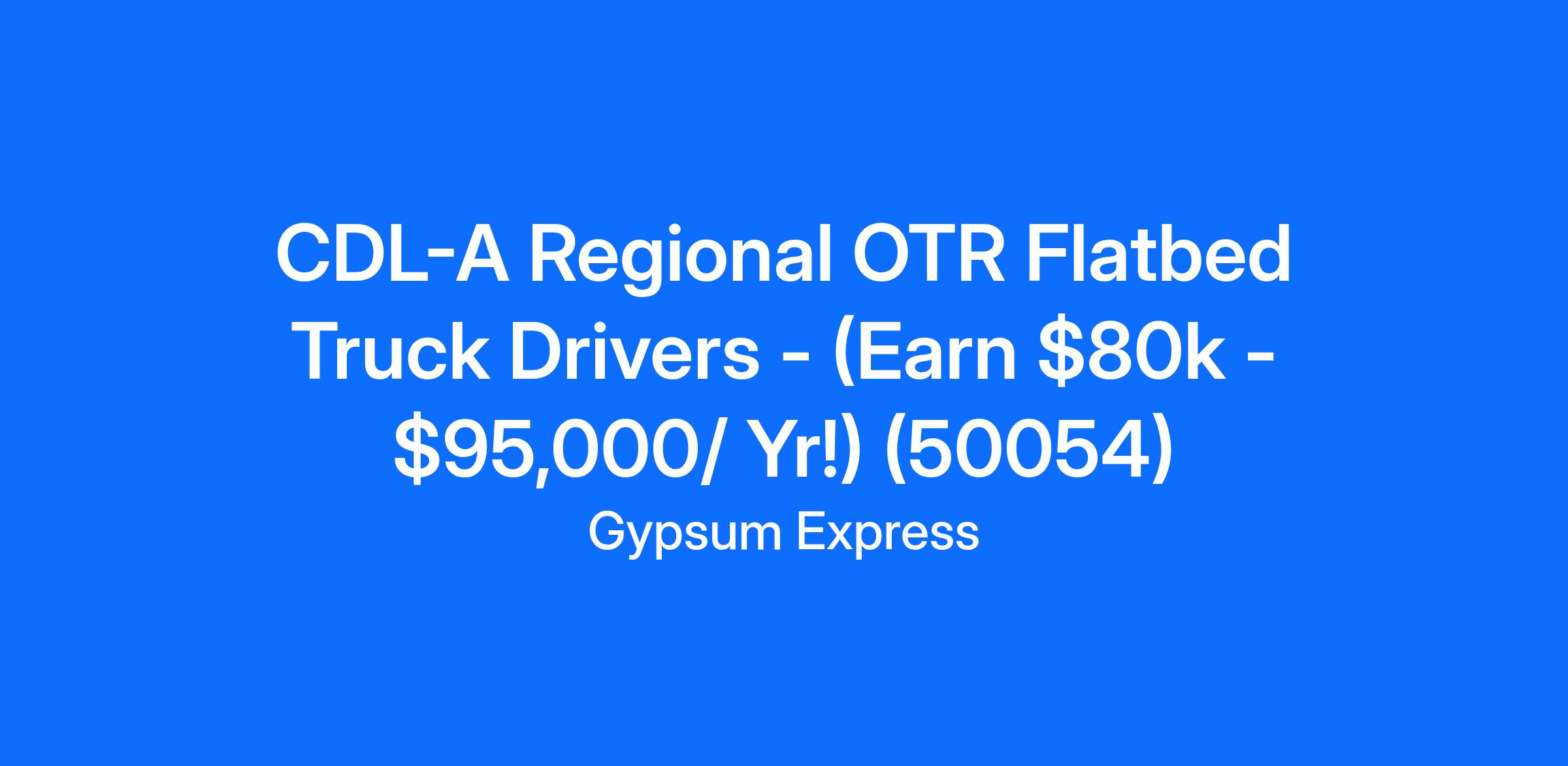 CDL-A Regional OTR Flatbed Truck Drivers - (Earn $80k - $95,000/ Yr!) (50054)