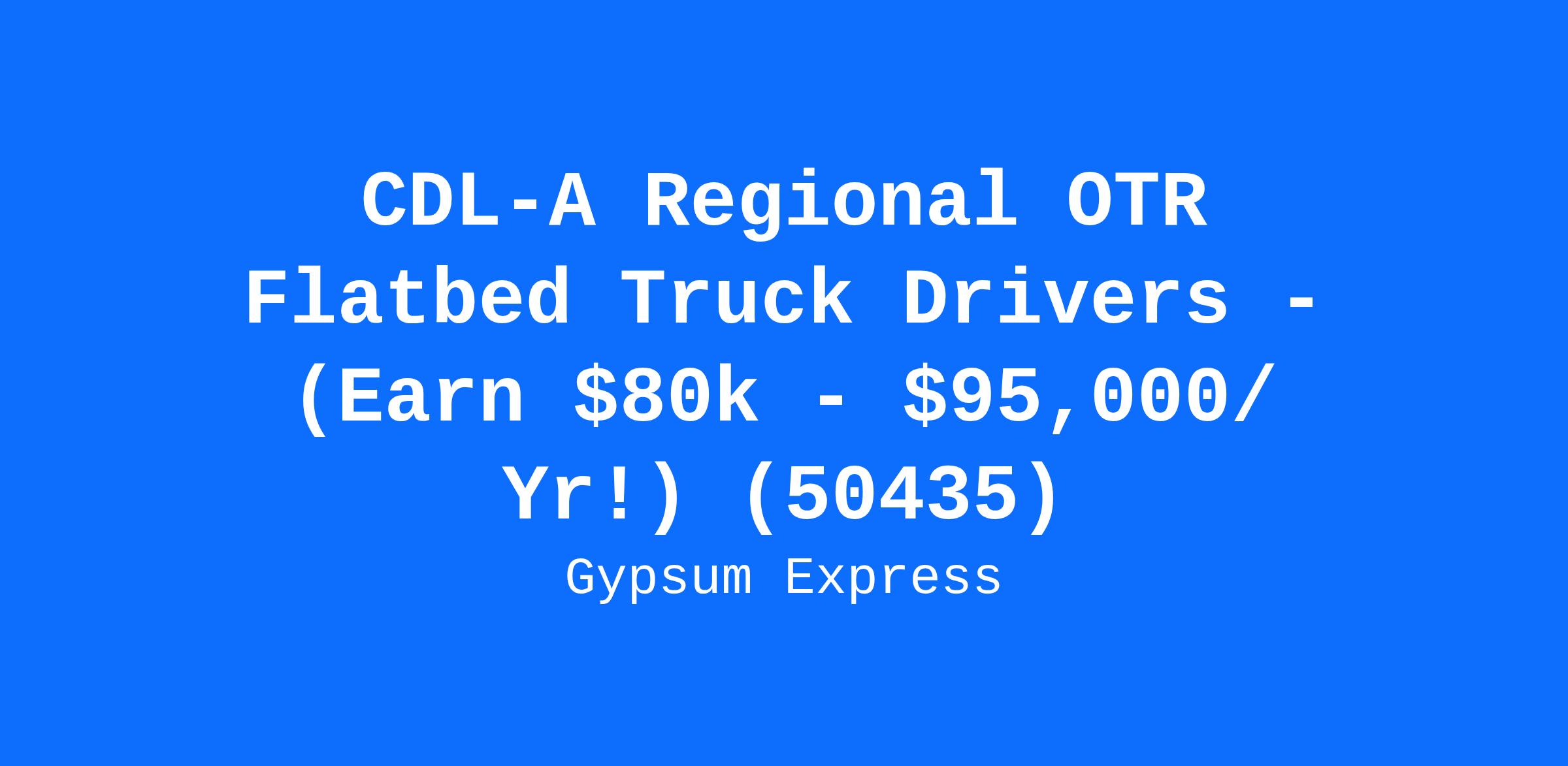 Gypsum Express is now hiring for Regional OTR CDL-A Flatbed Truck Drivers. Recent grads with no experience are welcome to apply!