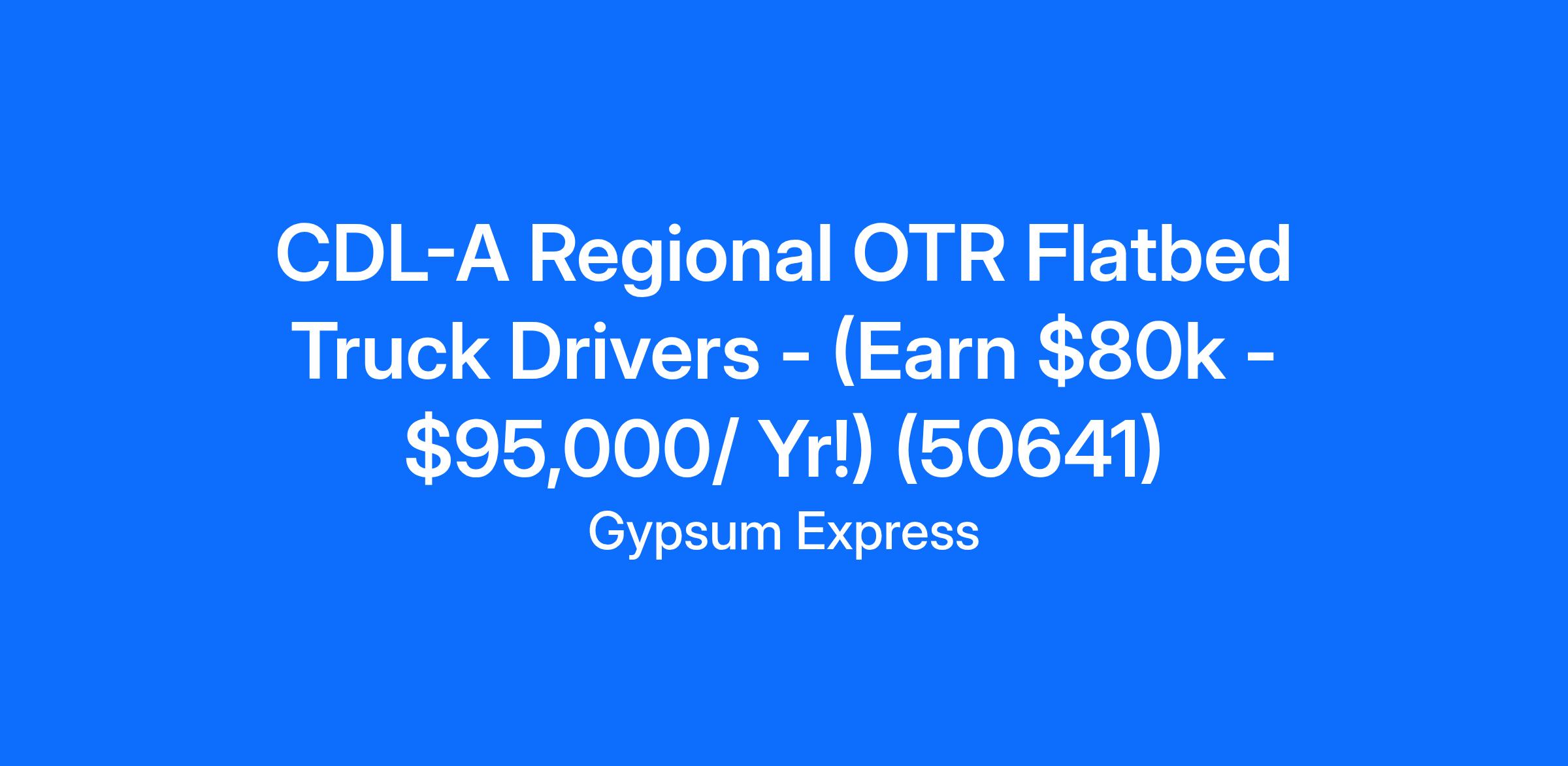 CDL-A Regional OTR Flatbed Truck Drivers - (Earn $80k - $95,000/ Yr!) (50641)