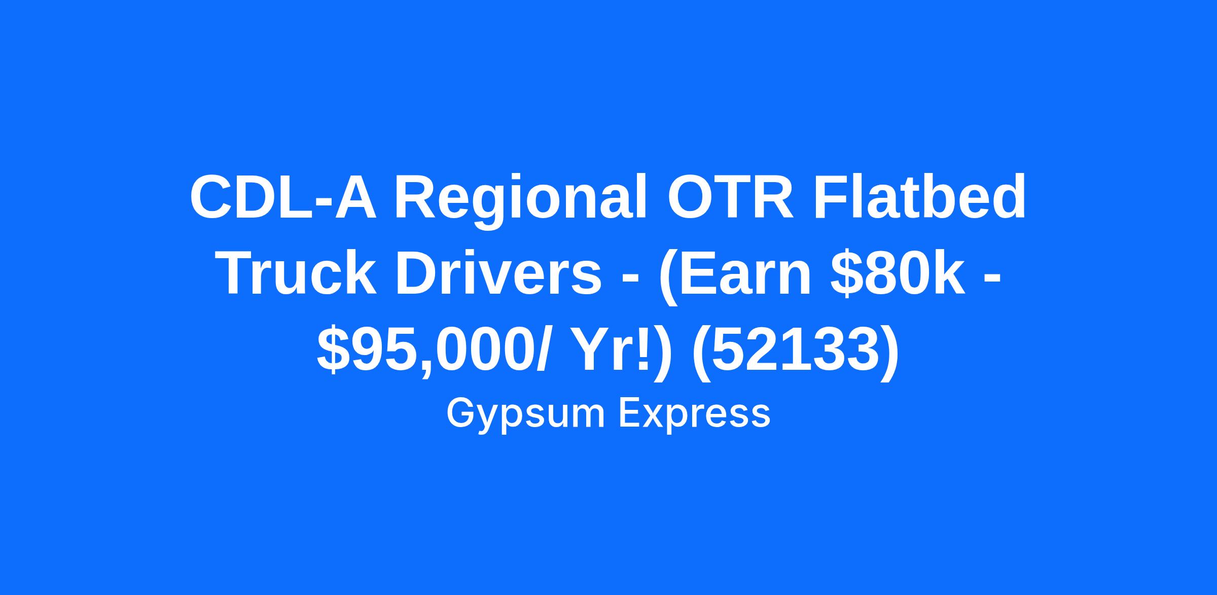 CDL-A Regional OTR Flatbed Truck Drivers - (Earn $80k - $95,000/ Yr!) (52133)