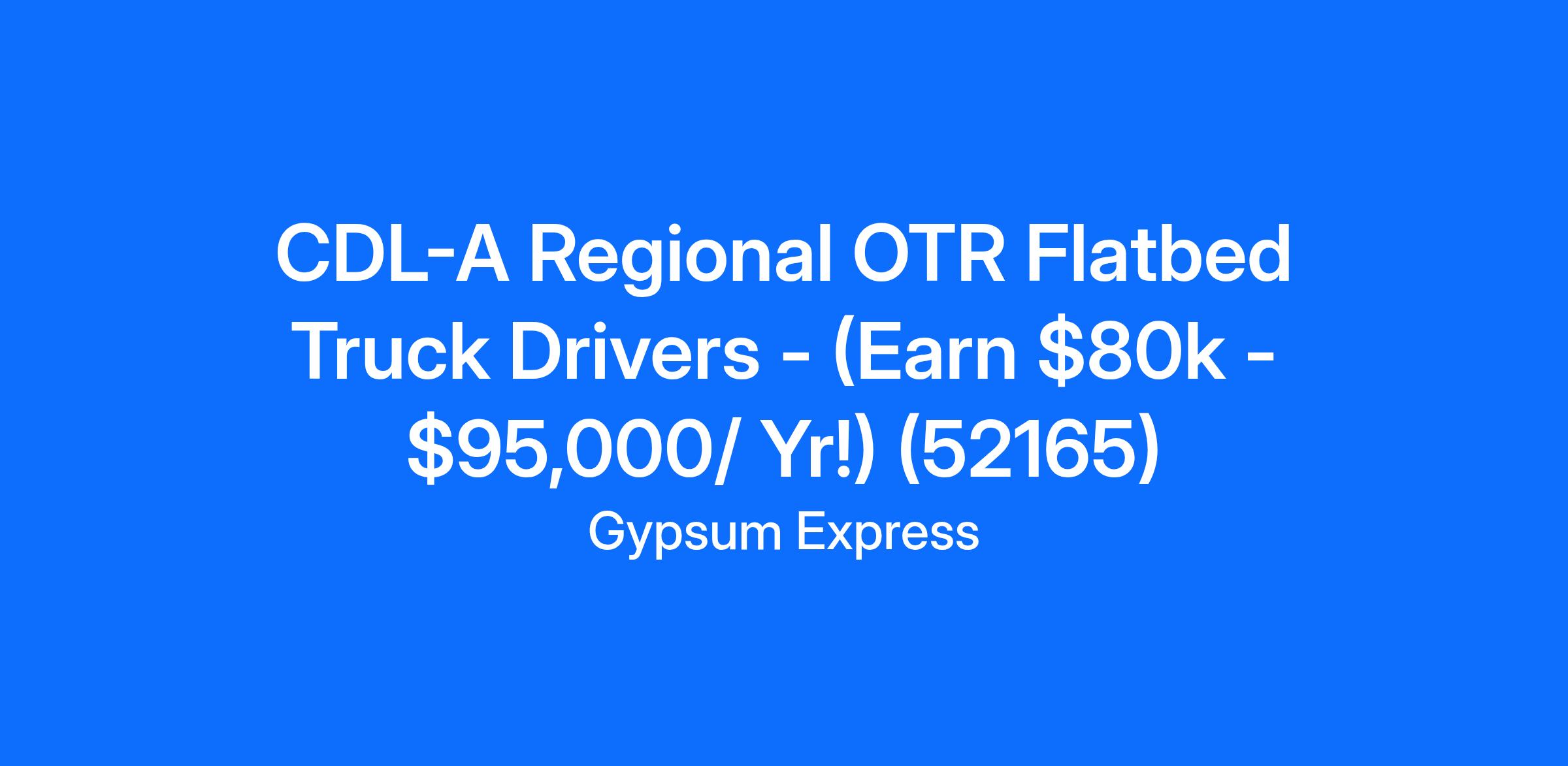 CDL-A Regional OTR Flatbed Truck Drivers - (Earn $80k - $95,000/ Yr!) (52165)