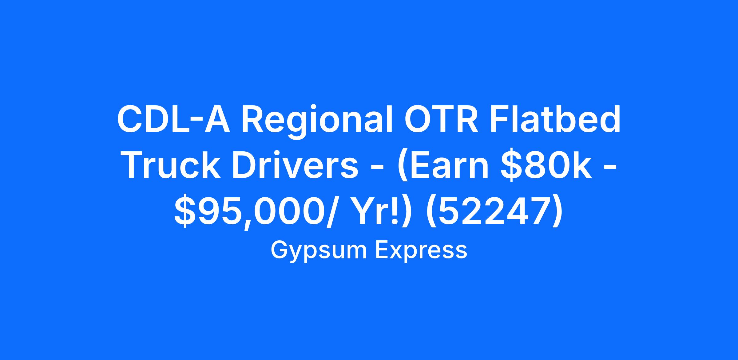 CDL-A Regional OTR Flatbed Truck Drivers - (Earn $80k - $95,000/ Yr!) (52247)