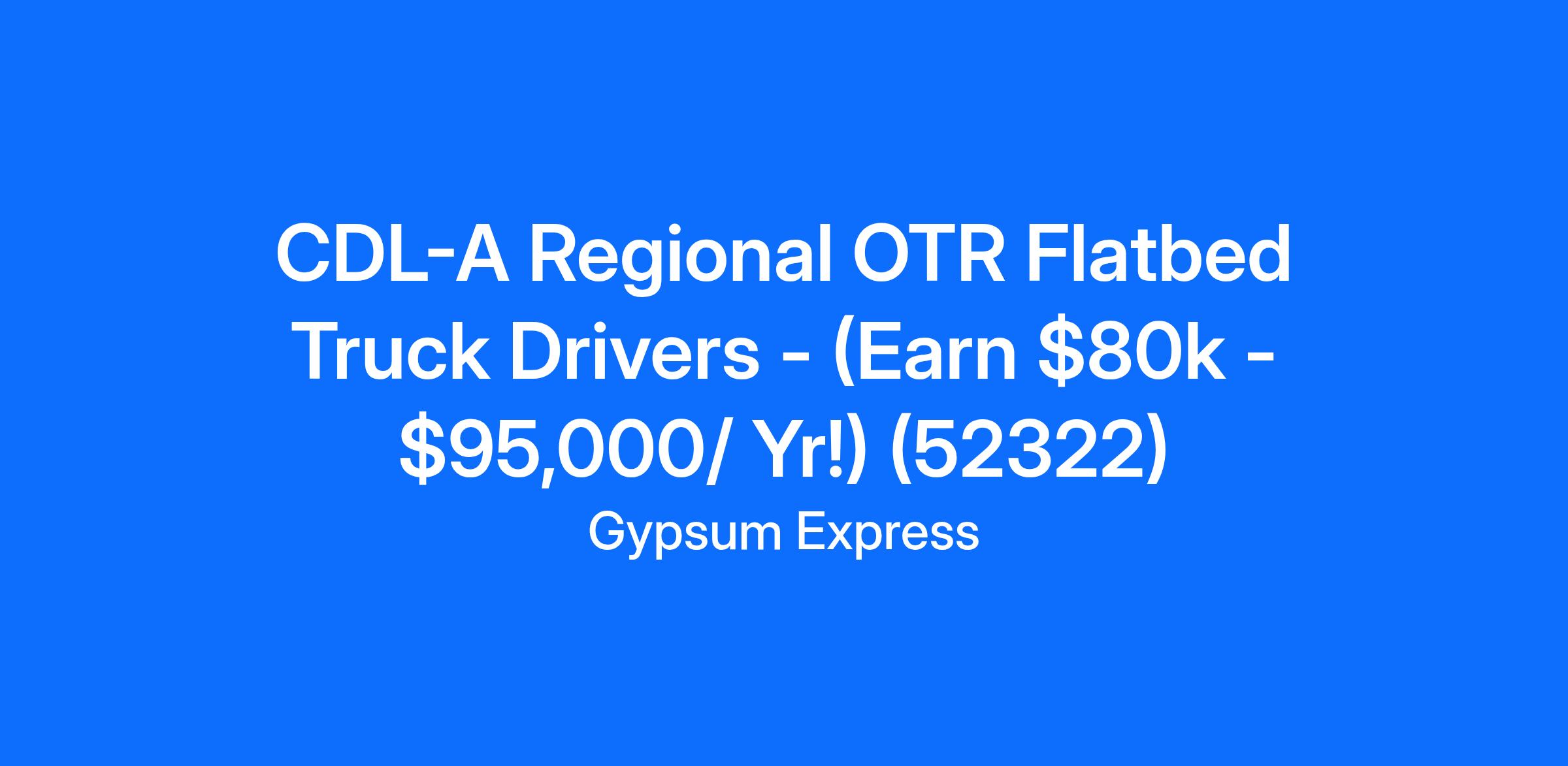 Gypsum Express is now hiring for Regional OTR CDL-A Flatbed Truck Drivers. Recent grads with no experience are welcome to apply!