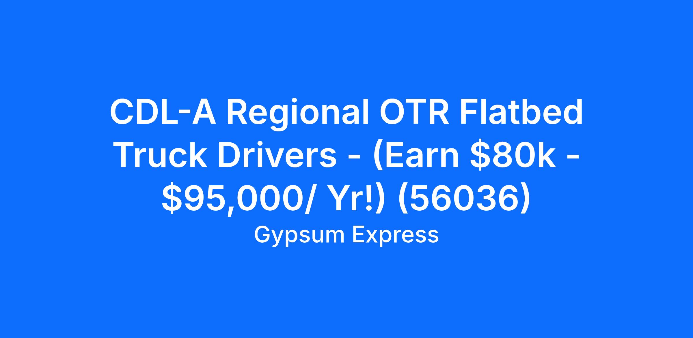 CDL-A Regional OTR Flatbed Truck Drivers - (Earn $80k - $95,000/ Yr!) (56036)