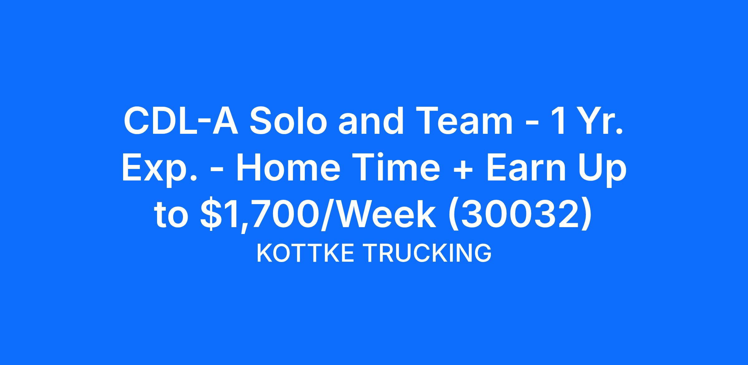 CDL-A Solo and Team - 1 Yr. Exp. - Home Time + Earn Up to $1,700/Week (30032)