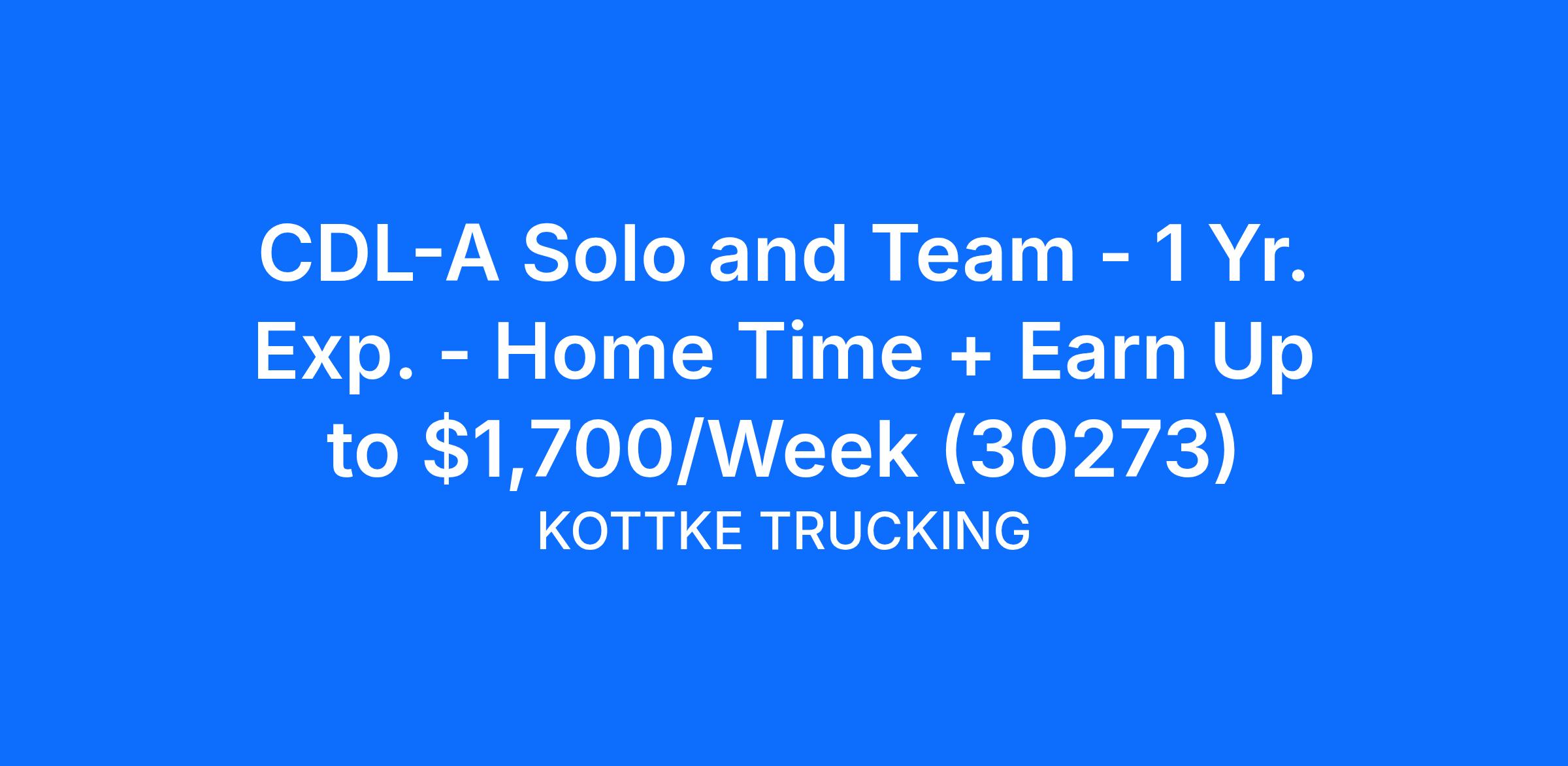 CDL-A Solo and Team - 1 Yr. Exp. - Home Time + Earn Up to $1,700/Week (30273)