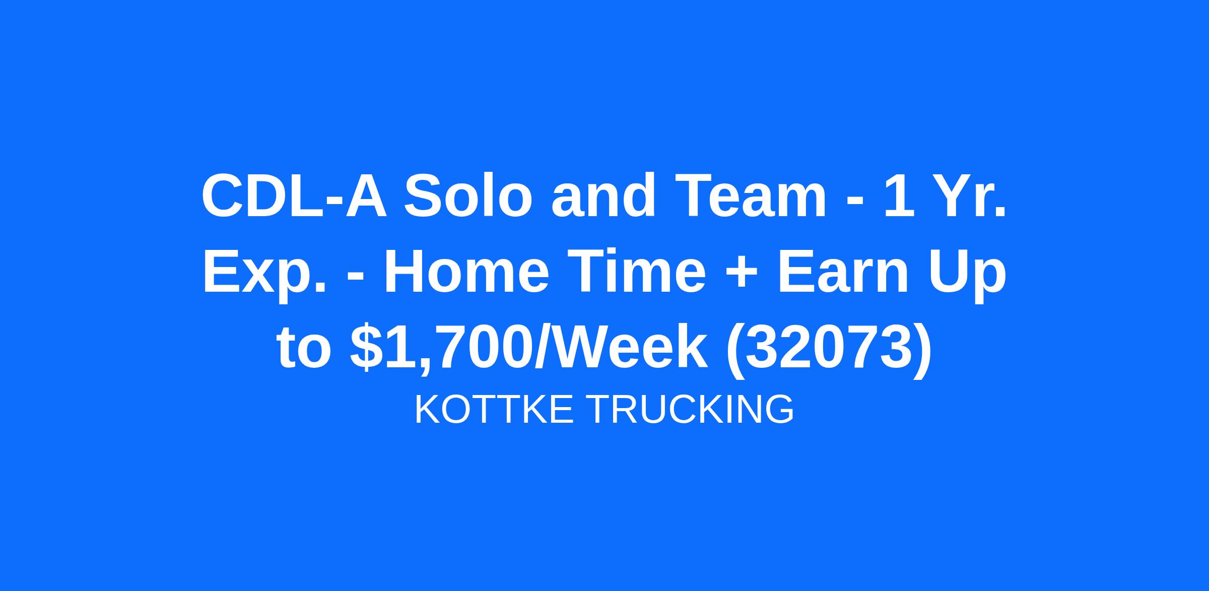 CDL-A Solo and Team - 1 Yr. Exp. - Home Time + Earn Up to $1,700/Week (32073)