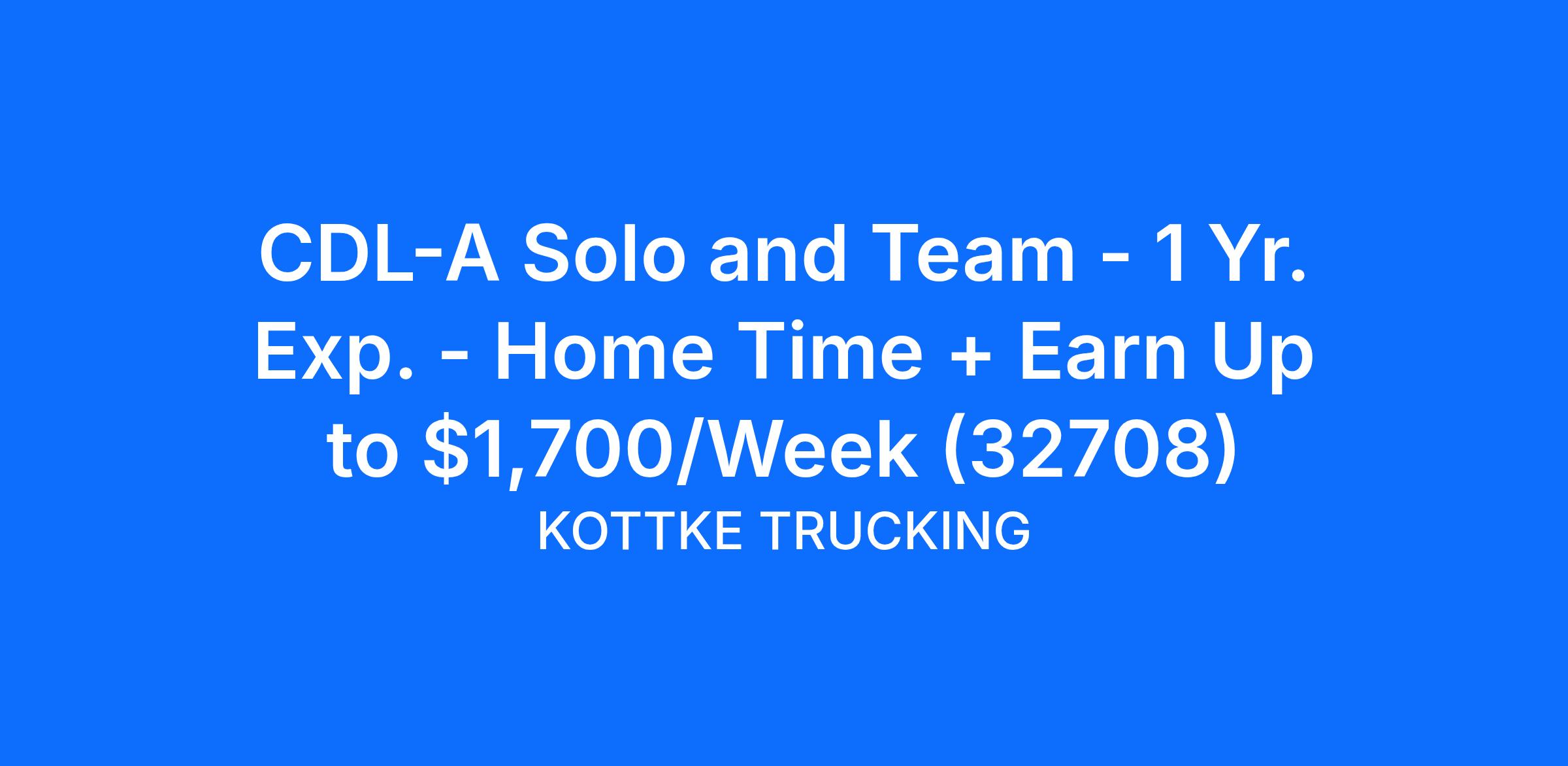 CDL-A Solo and Team - 1 Yr. Exp. - Home Time + Earn Up to $1,700/Week (32708)