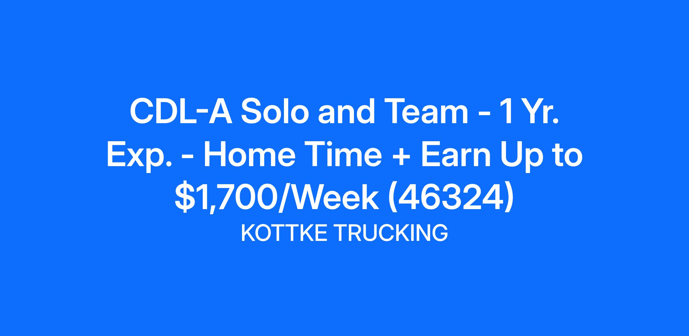 Kottke Trucking, Inc. is Now Hiring CDL-A Solo and Team Drivers!