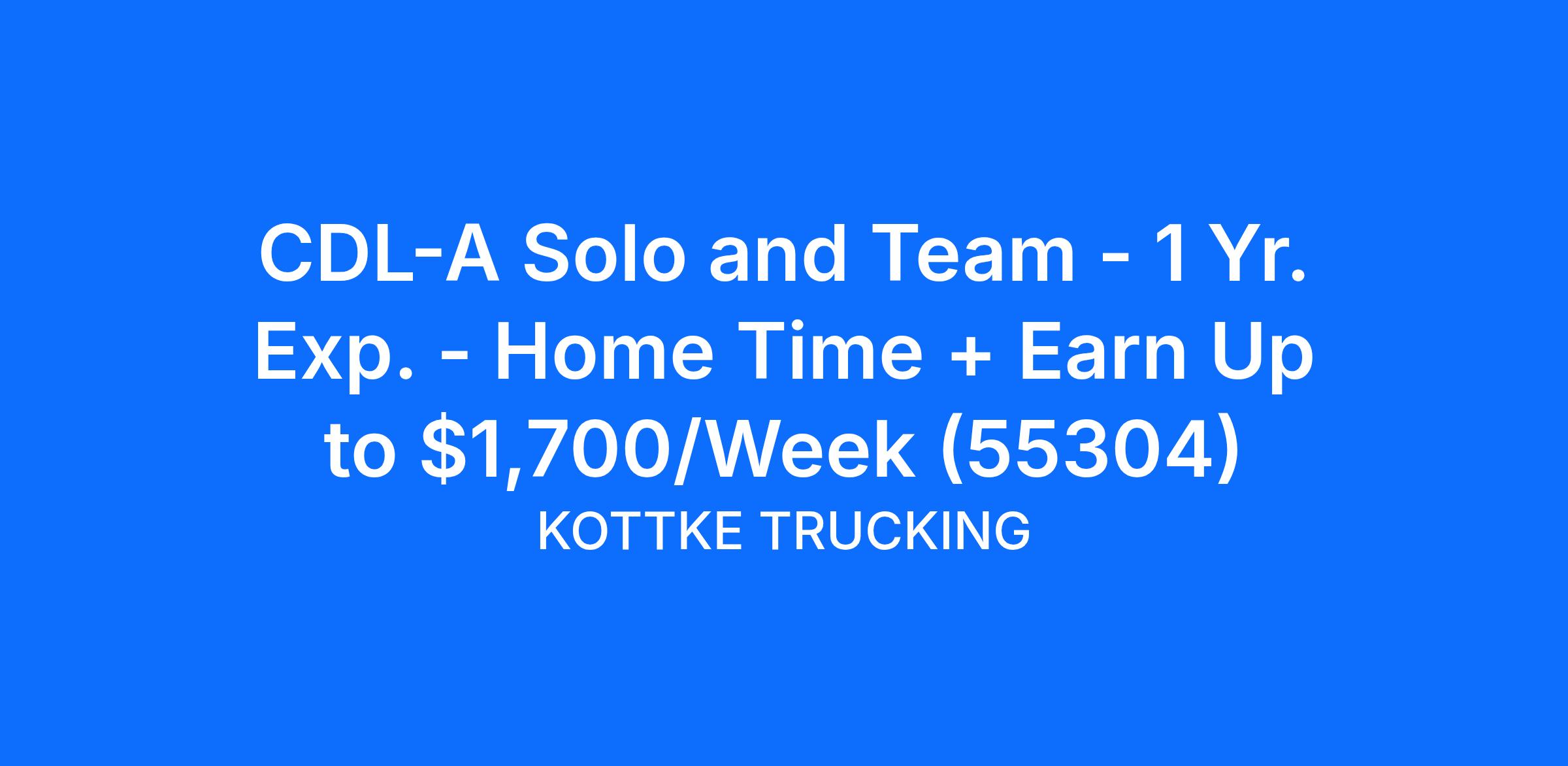 CDL-A Solo and Team - 1 Yr. Exp. - Home Time + Earn Up to $1,700/Week (55304)