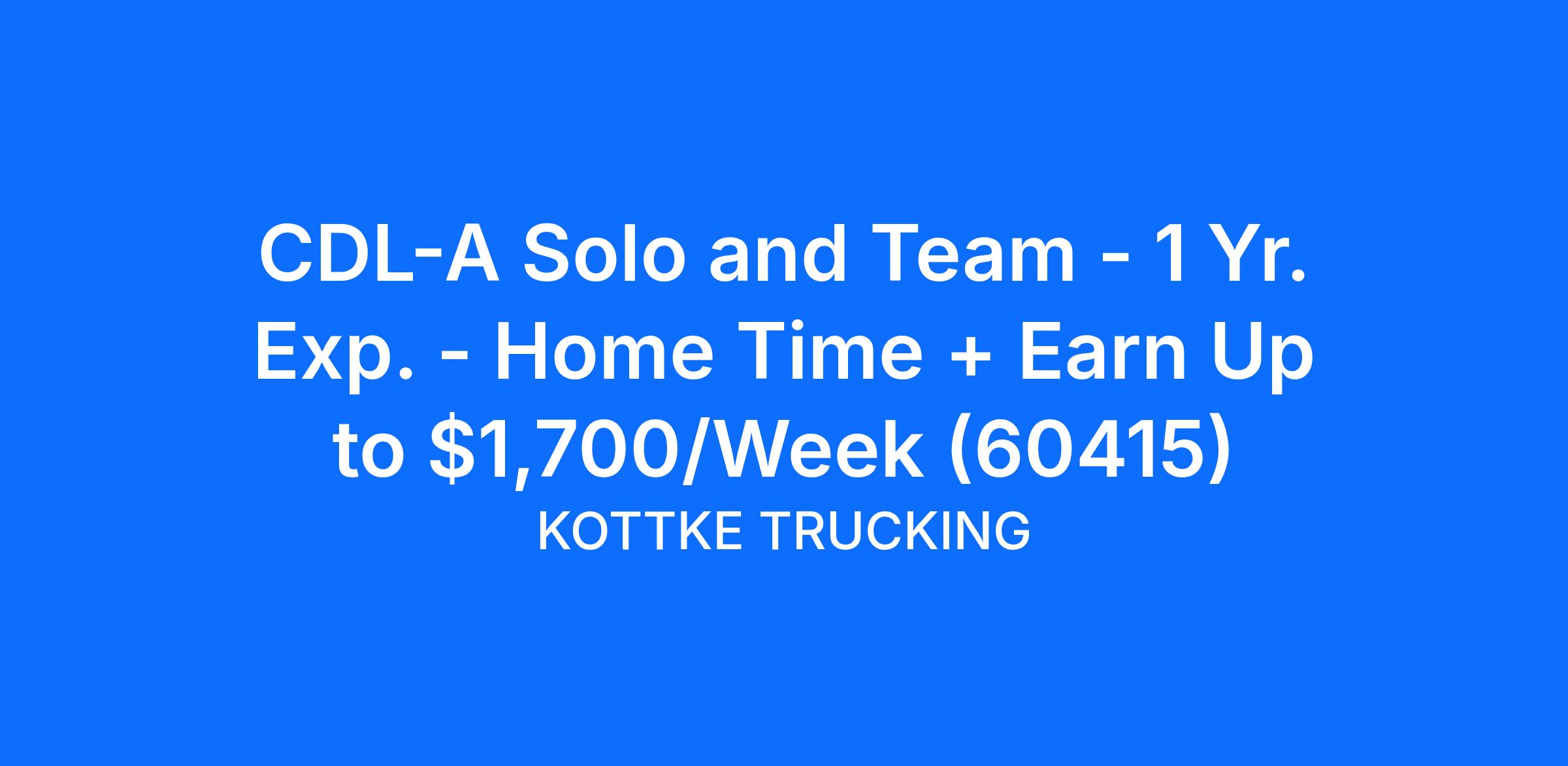 CDL-A Solo and Team - 1 Yr. Exp. - Home Time + Earn Up to $1,700/Week (60415)