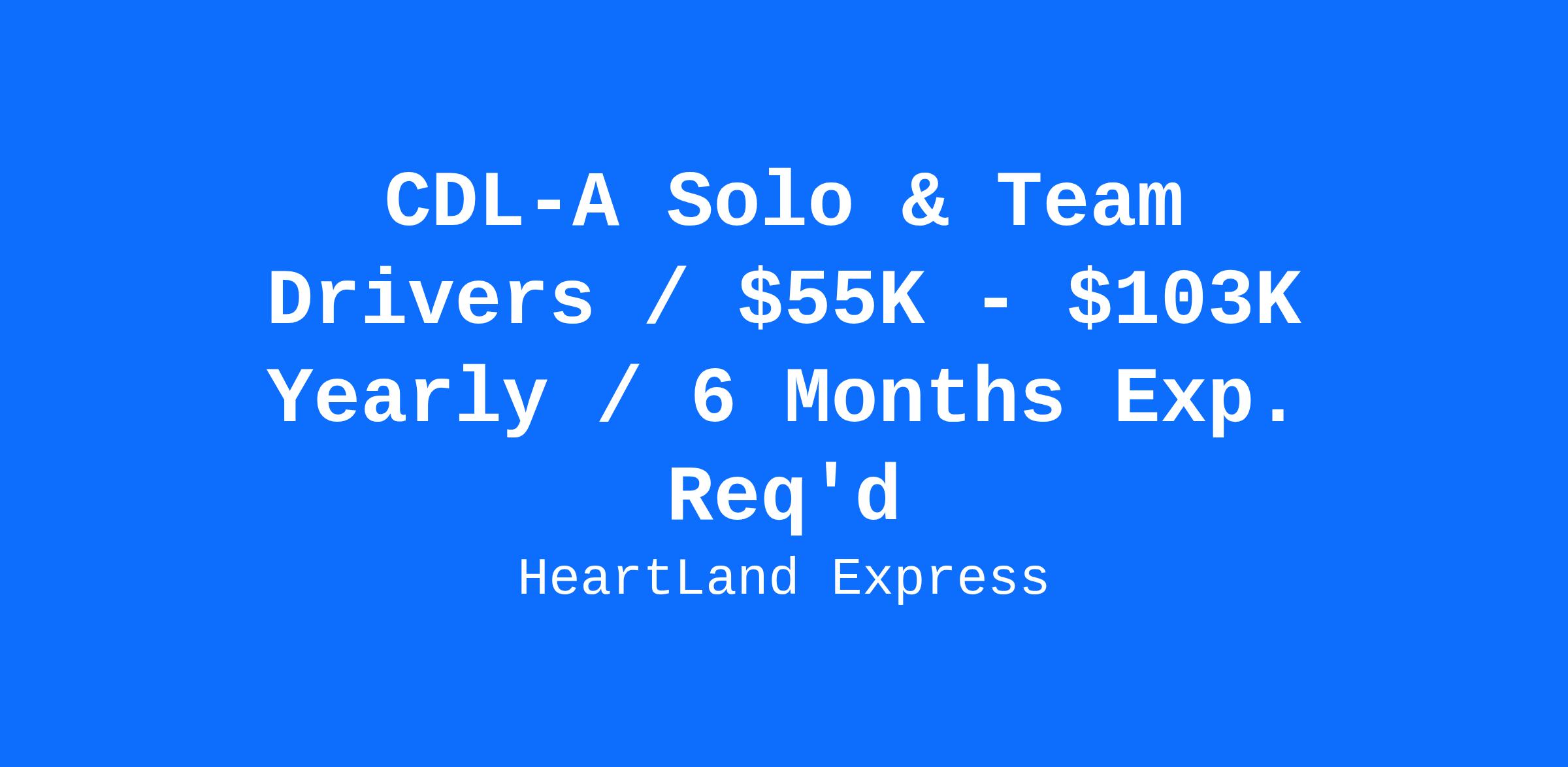 CDL-A Solo & Team Drivers / $55K - $103K Yearly / 6 Months Exp. Req'd