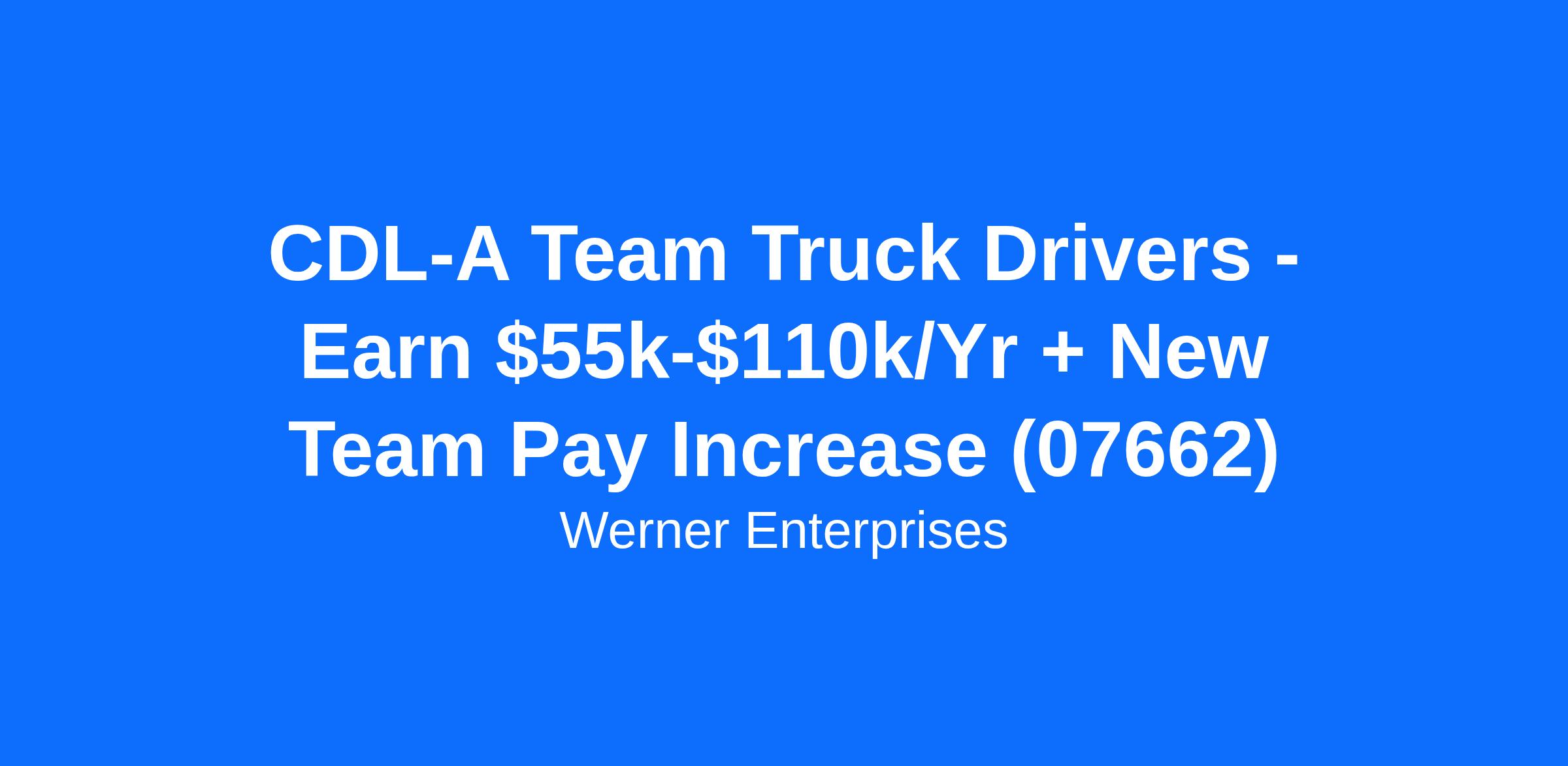 Werner is Now Hiring CDL-A Team Truck Drivers!