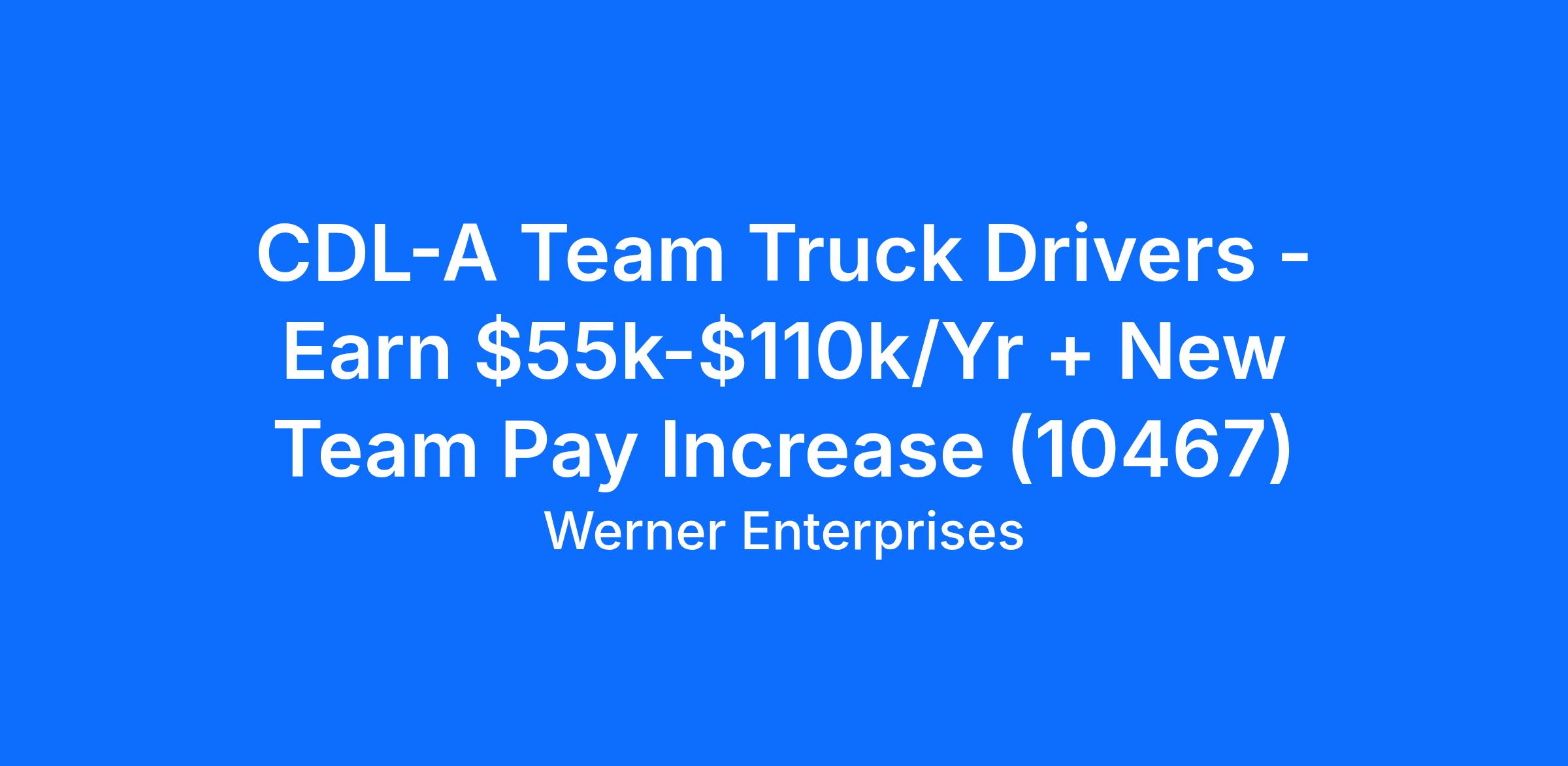 CDL-A Team Truck Drivers - Earn $55k-$110k/Yr + New Team Pay Increase (10467)