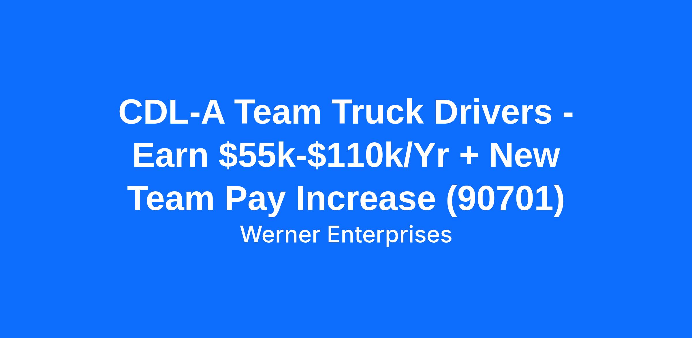 CDL-A Team Truck Drivers - Earn $55k-$110k/Yr + New Team Pay Increase (90701)