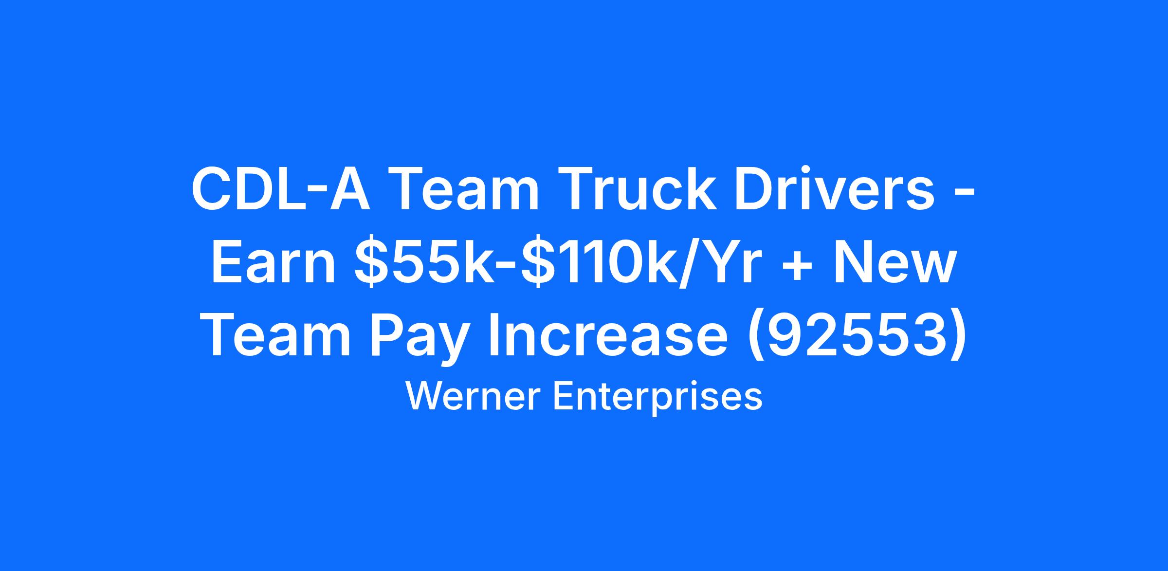 CDL-A Team Truck Drivers - Earn $55k-$110k/Yr + New Team Pay Increase (92553)