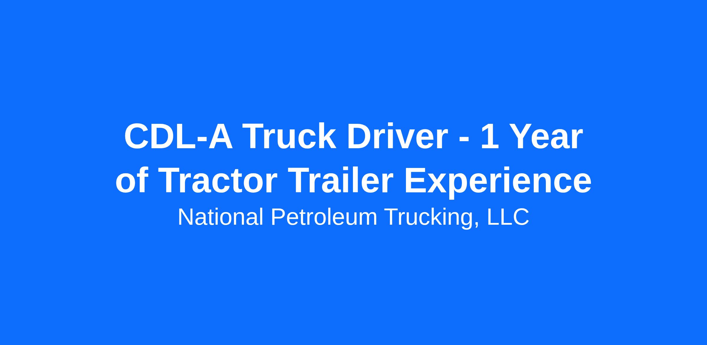 CDL-A Truck Driver - 1 Year of Tractor Trailer Experience
