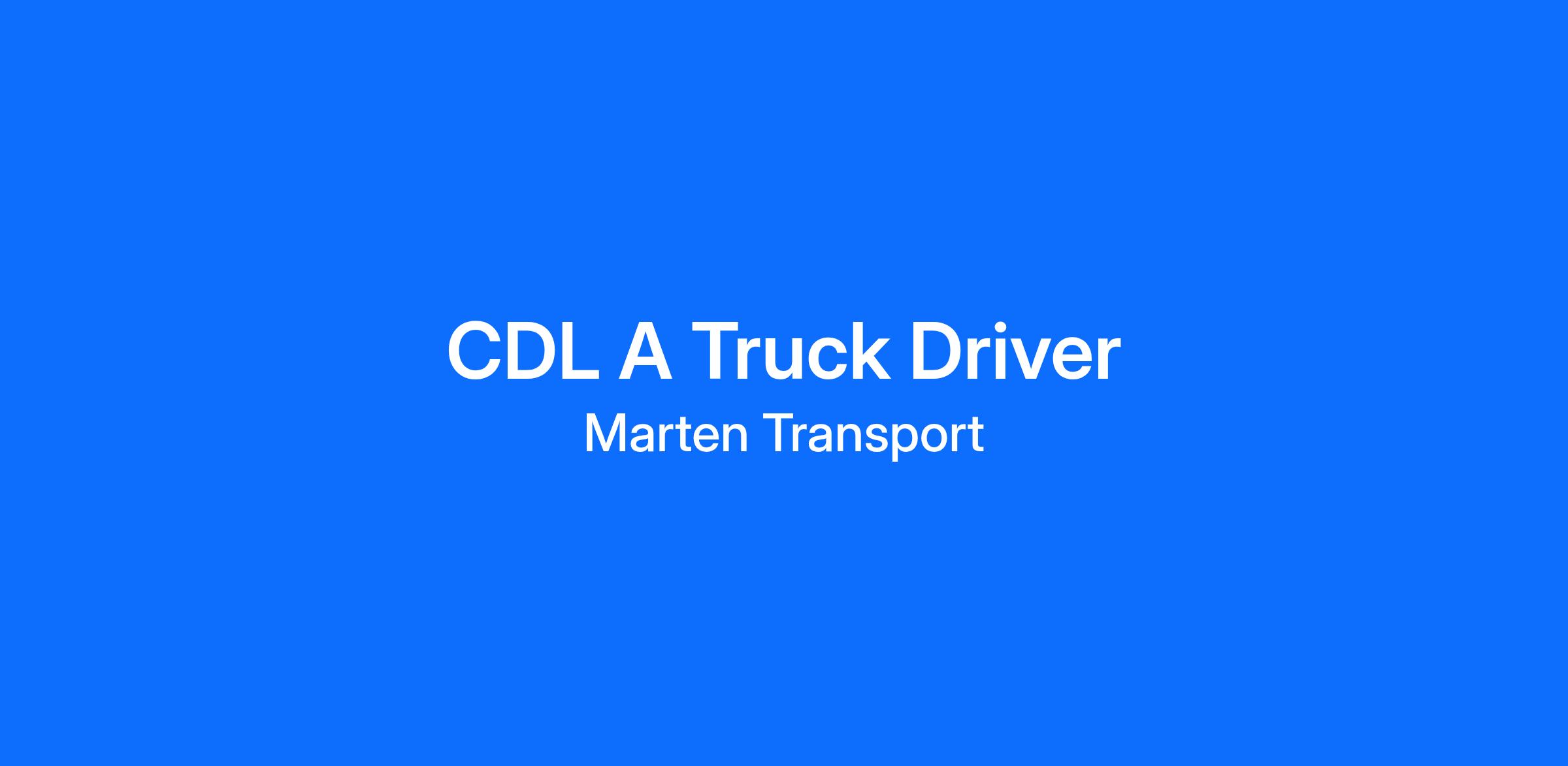Get Paid For Your Experience | Home Every WeekendCDL A Driver Benefits:- Our top CDL A drivers make $75,000+ a year- Home every weekend!- $250 transition money for drivers being out longer than 7 days- Paid practical miles (empty and loaded)- Fuel bonus every 18,000 miles- Incentive bonus program- Driver referral bonus program- Paid vacation and holidays- Medical, dental, vision, and life insurance- Earn free company stock and 401K- 3 - 7 CPM Incentive Bonus ProgramCDL A Driver Requirements:- 6 Months, recent, OTR experience- Posses Valid Class A CDL- No more than 2 preventable accidents in the past 2 years- No reckless driving- No DUI or DWI or SAP within the past 5 years- No more than 2 moving violations in the past three years- All felonies will be reviewed on a case by case basisLate Model Freightliner Cascadia Tractors equipped with:- Automatic- Power Inverters- Refrigerator- Qualcomm- E-Logs About Marten Transport, Ltd:EXPECT THE BEST WHEN YOU JOIN MARTEN TRANSPORTAre you getting the very best your carrier has to offer? Recognized as a TCA Elite Fleet for 2025 as one of the Best Places to Drive, it's time to look at Marten Transport where you can EXPECT THE BEST! Our opportunities, options and advantages have outpaced the industry for more than 75 years and we're still growing and adding more perks every year. We have a place for you today with guaranteed pay!