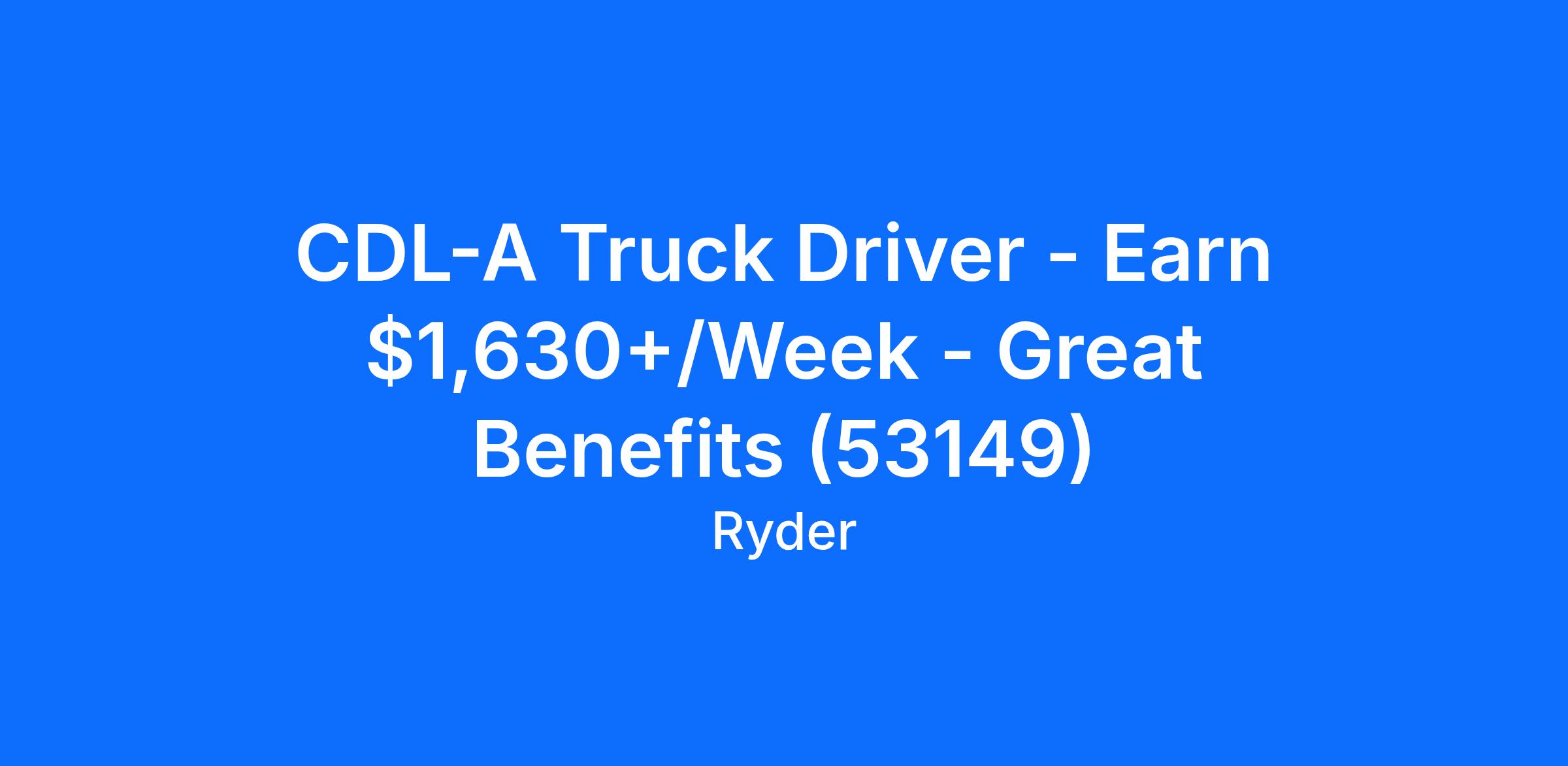 CDL-A Truck Driver - Earn $1,630+/Week - Great Benefits (53149)