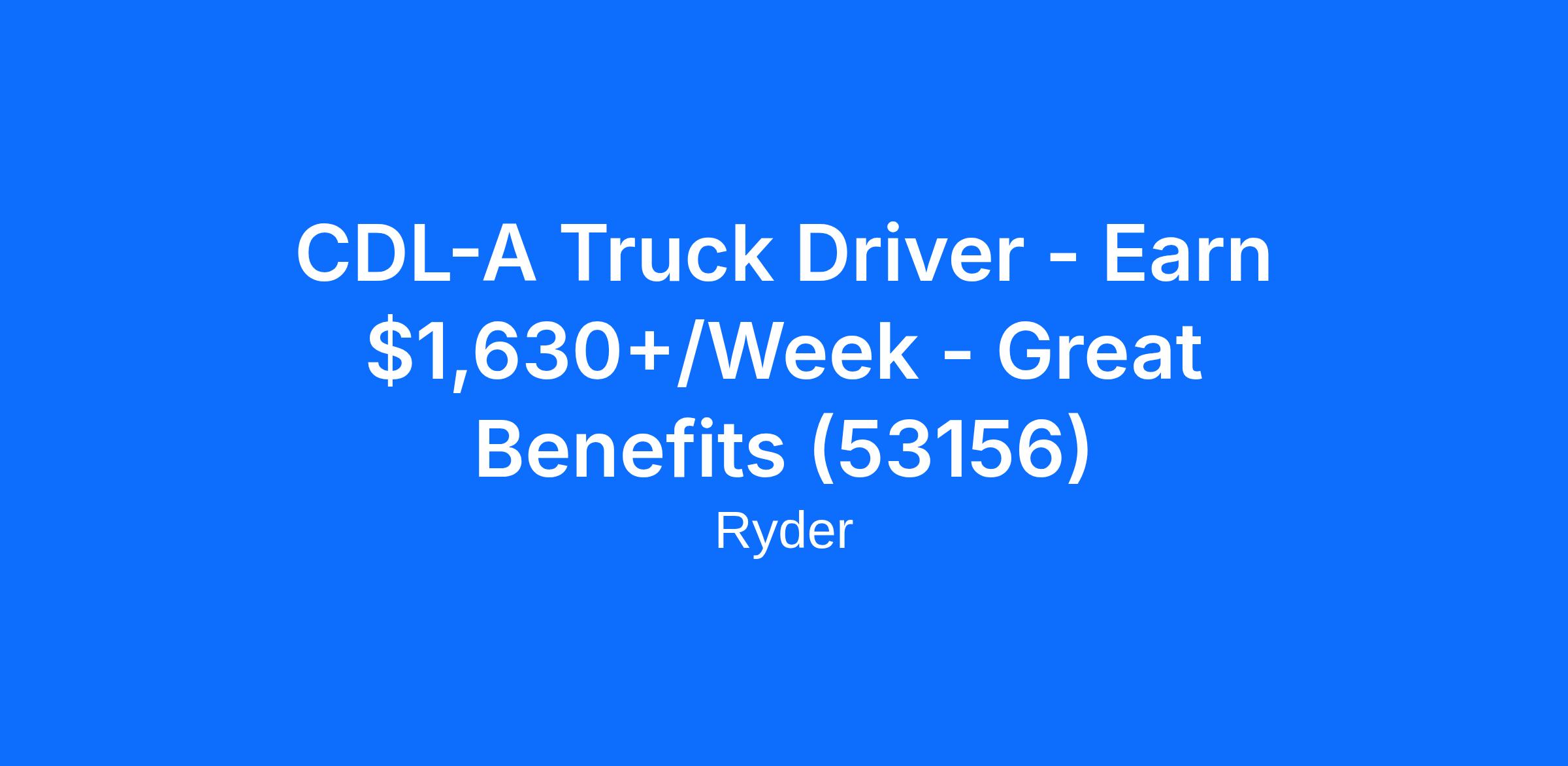CDL-A Truck Driver - Earn $1,630+/Week - Great Benefits (53156)