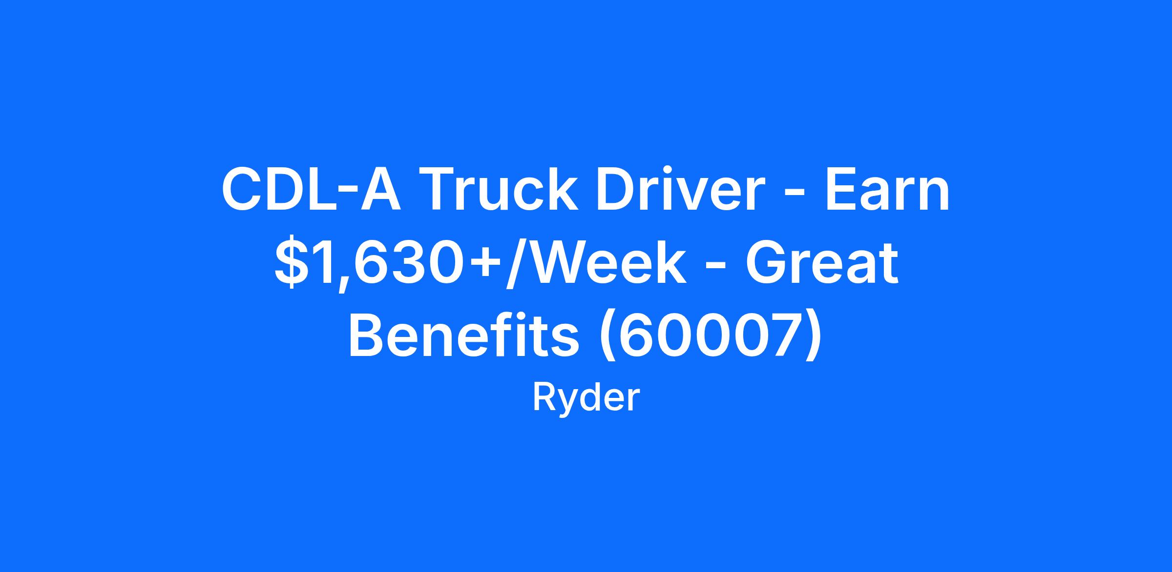 CDL-A Truck Driver - Earn $1,630+/Week - Great Benefits (60007)