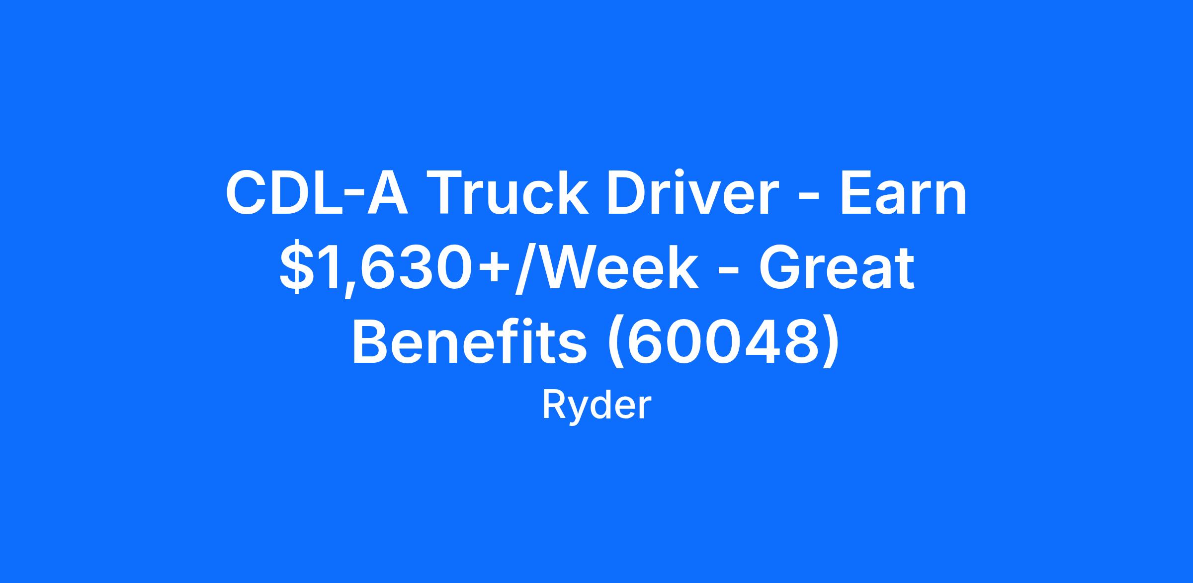 CDL-A Truck Driver - Earn $1,630+/Week - Great Benefits (60048)