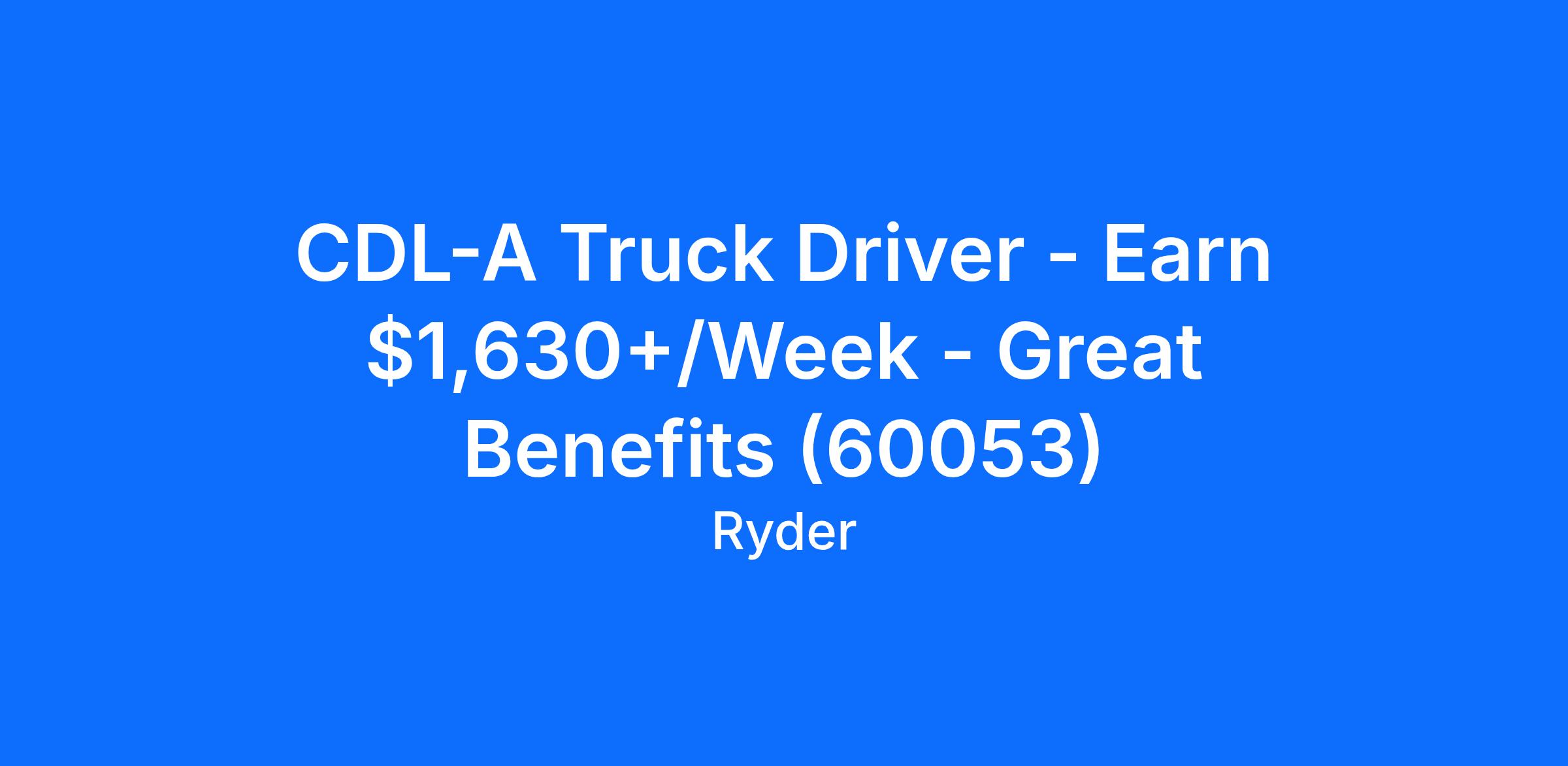 CDL-A Truck Driver - Earn $1,630+/Week - Great Benefits (60053)