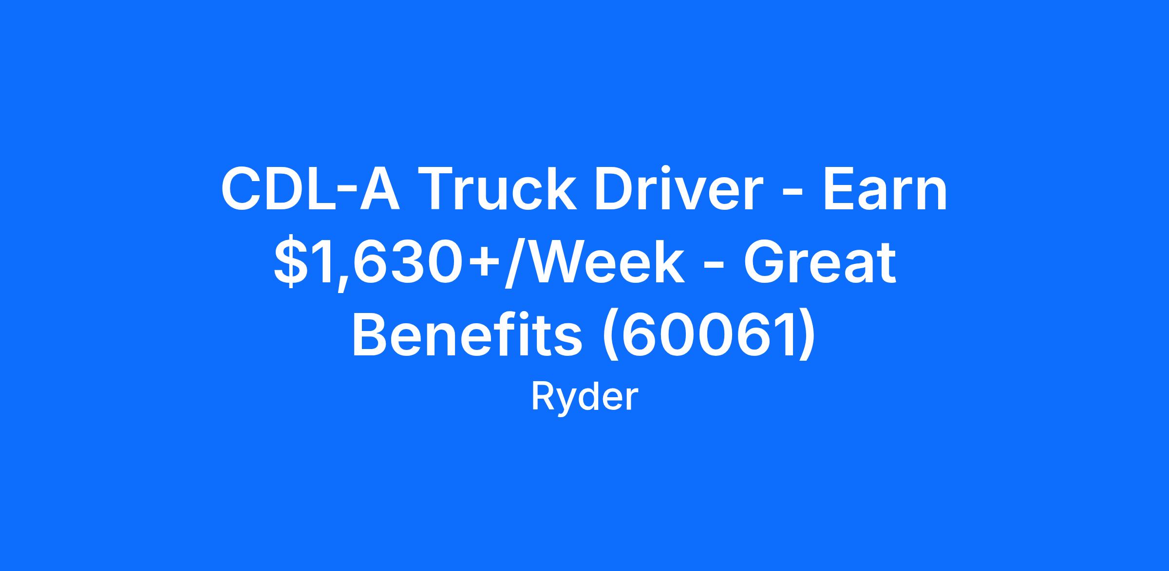 CDL-A Truck Driver - Earn $1,630+/Week - Great Benefits (60061)