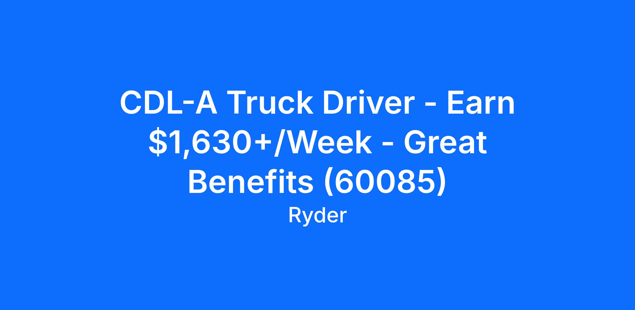 CDL-A Truck Driver - Earn $1,630+/Week - Great Benefits (60085)