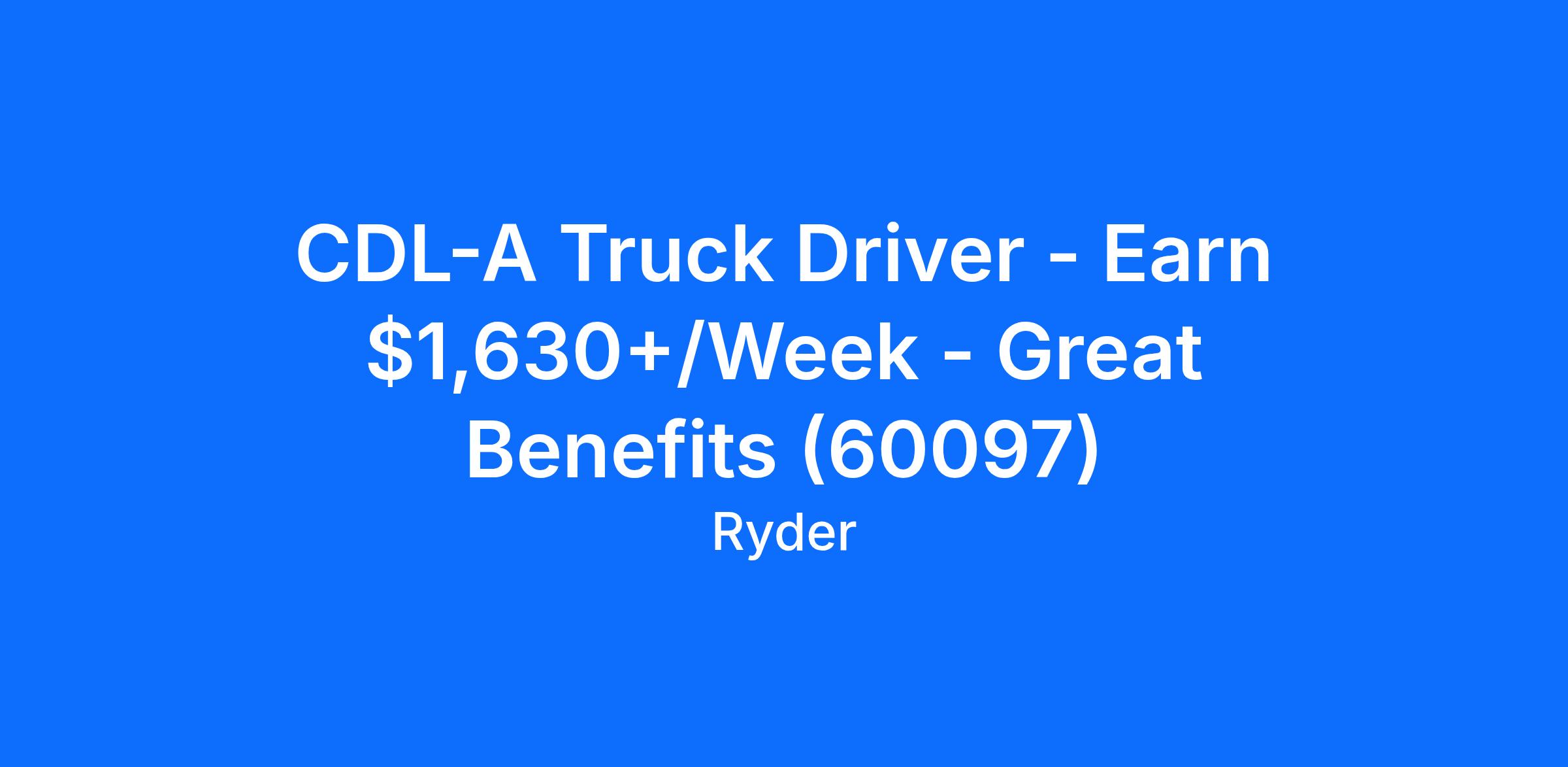 CDL-A Truck Driver - Earn $1,630+/Week - Great Benefits (60097)