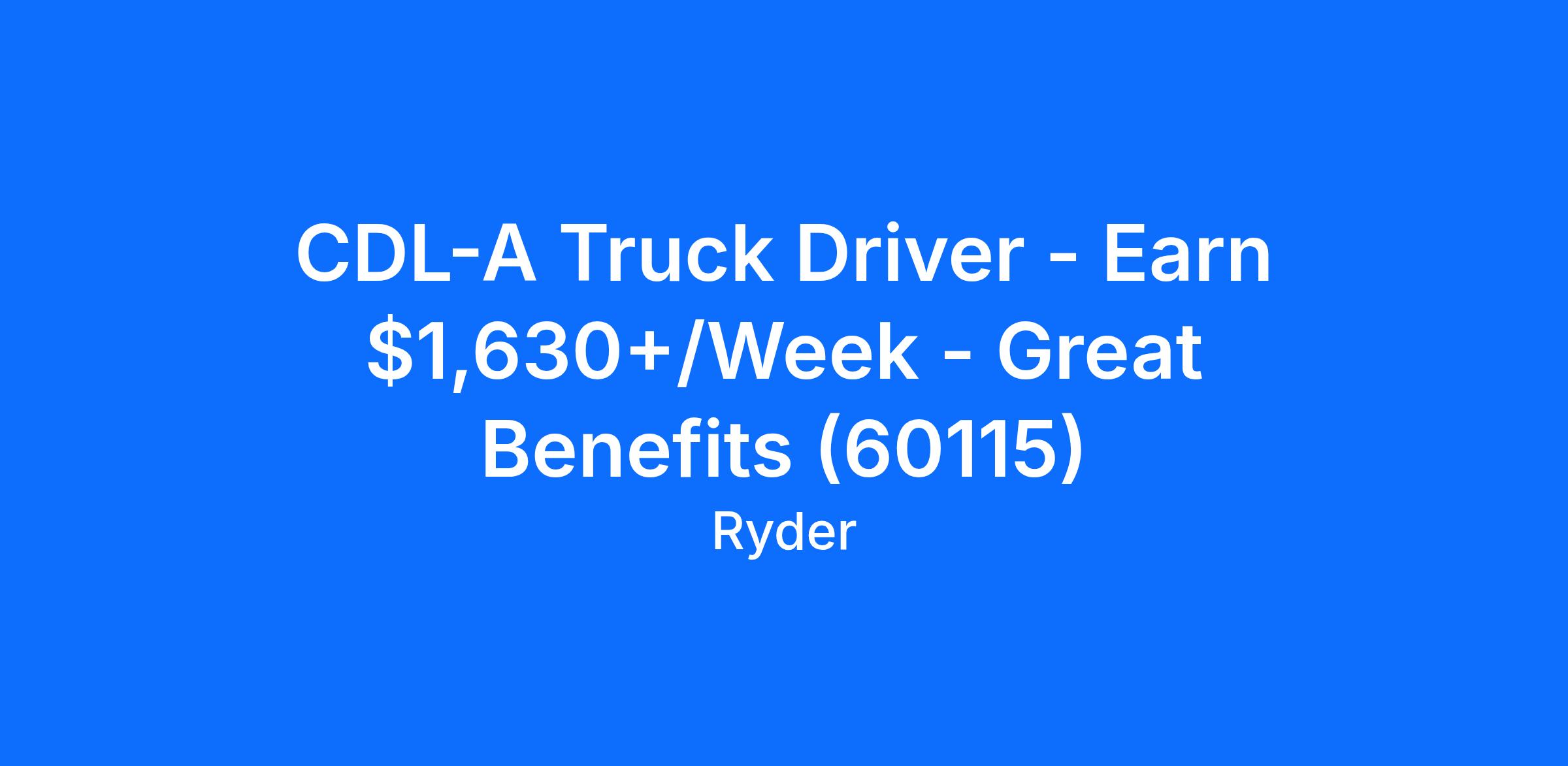 CDL-A Truck Driver - Earn $1,630+/Week - Great Benefits (60115)