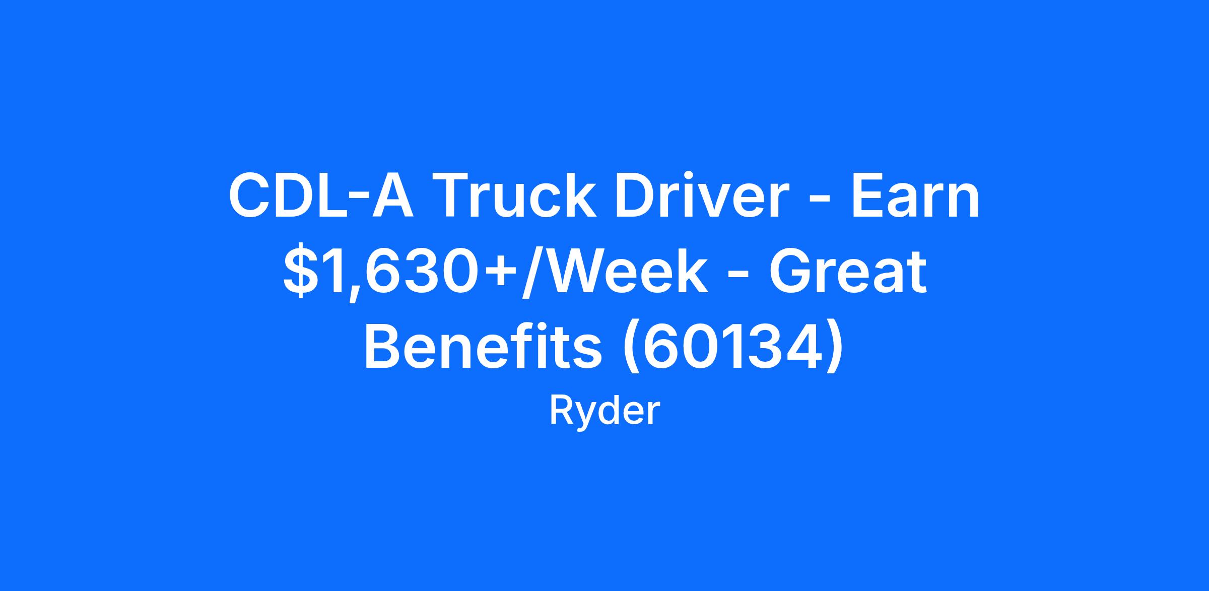 CDL-A Truck Driver - Earn $1,630+/Week - Great Benefits (60134)