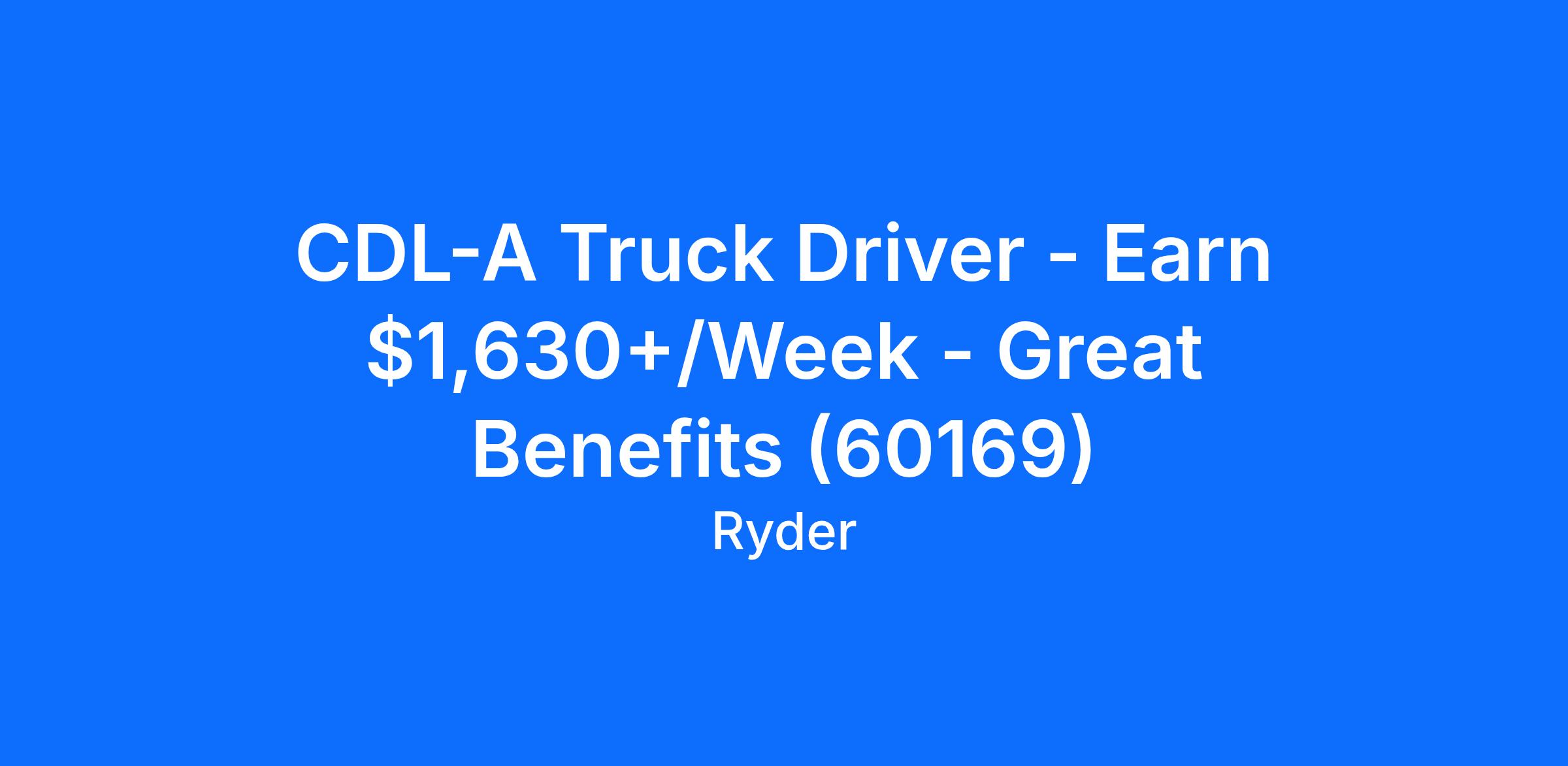 CDL-A Truck Driver - Earn $1,630+/Week - Great Benefits (60169)