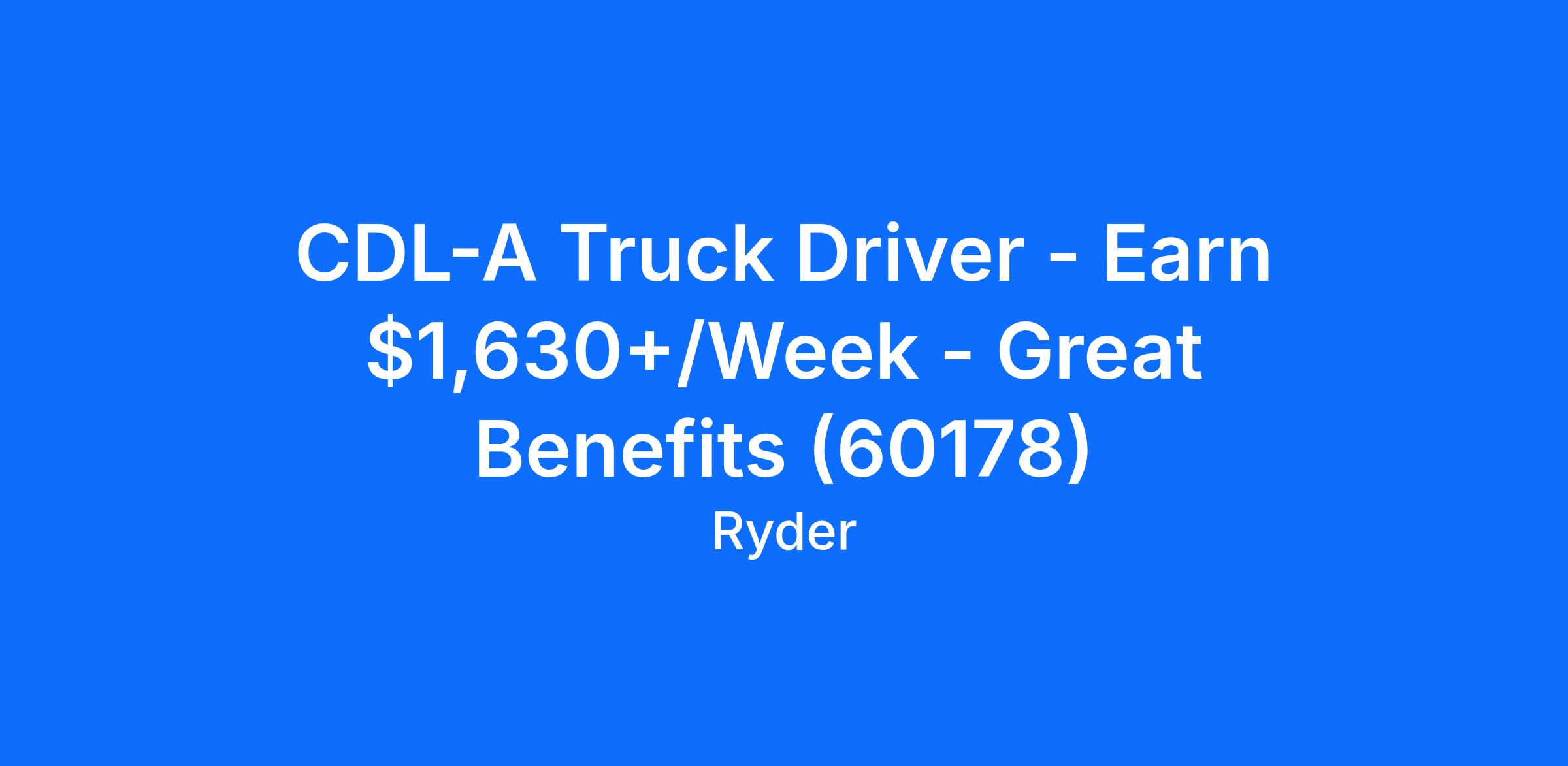 CDL-A Truck Driver - Earn $1,630+/Week - Great Benefits (60178)