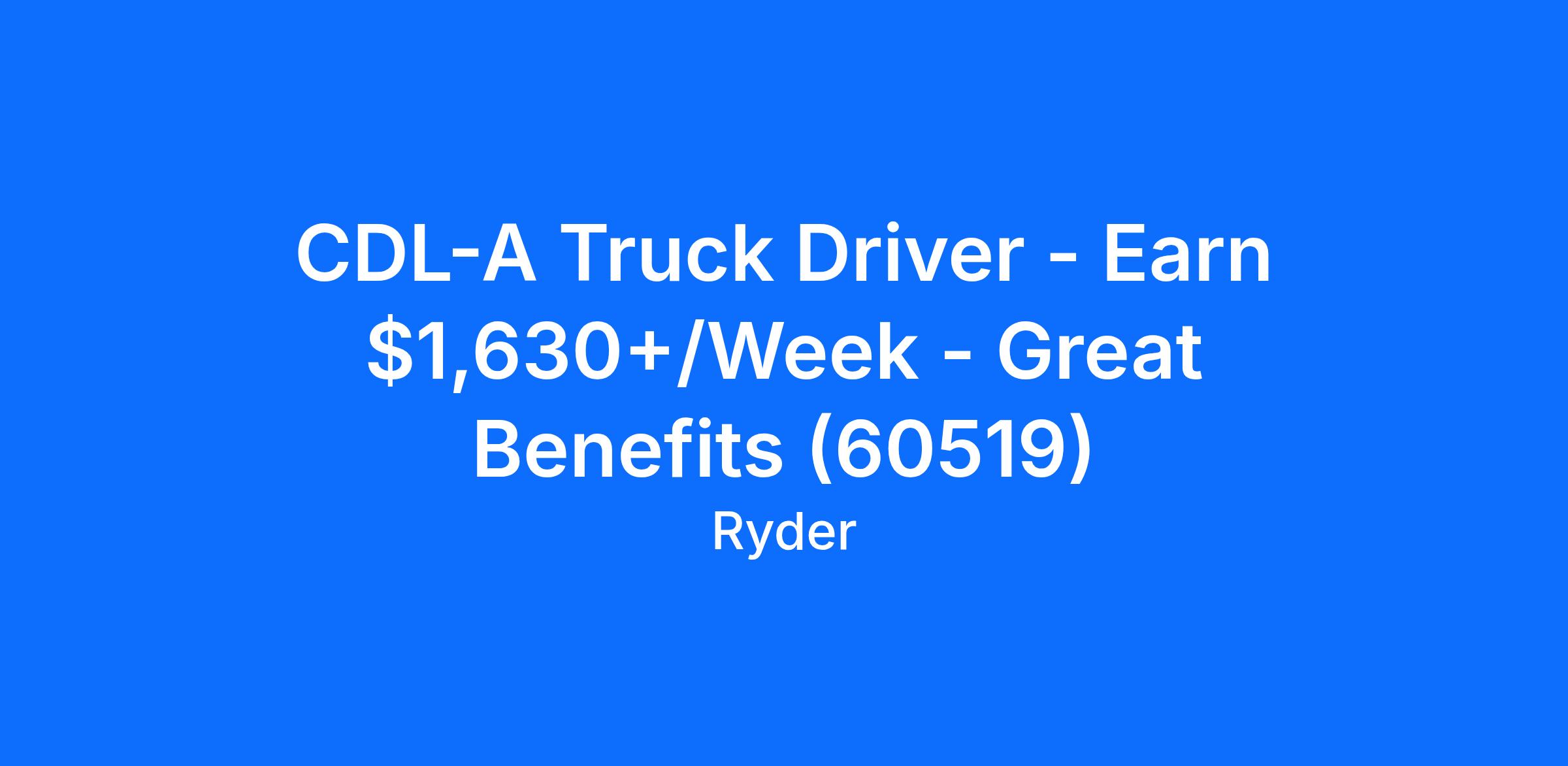 CDL-A Truck Driver - Earn $1,630+/Week - Great Benefits (60519)