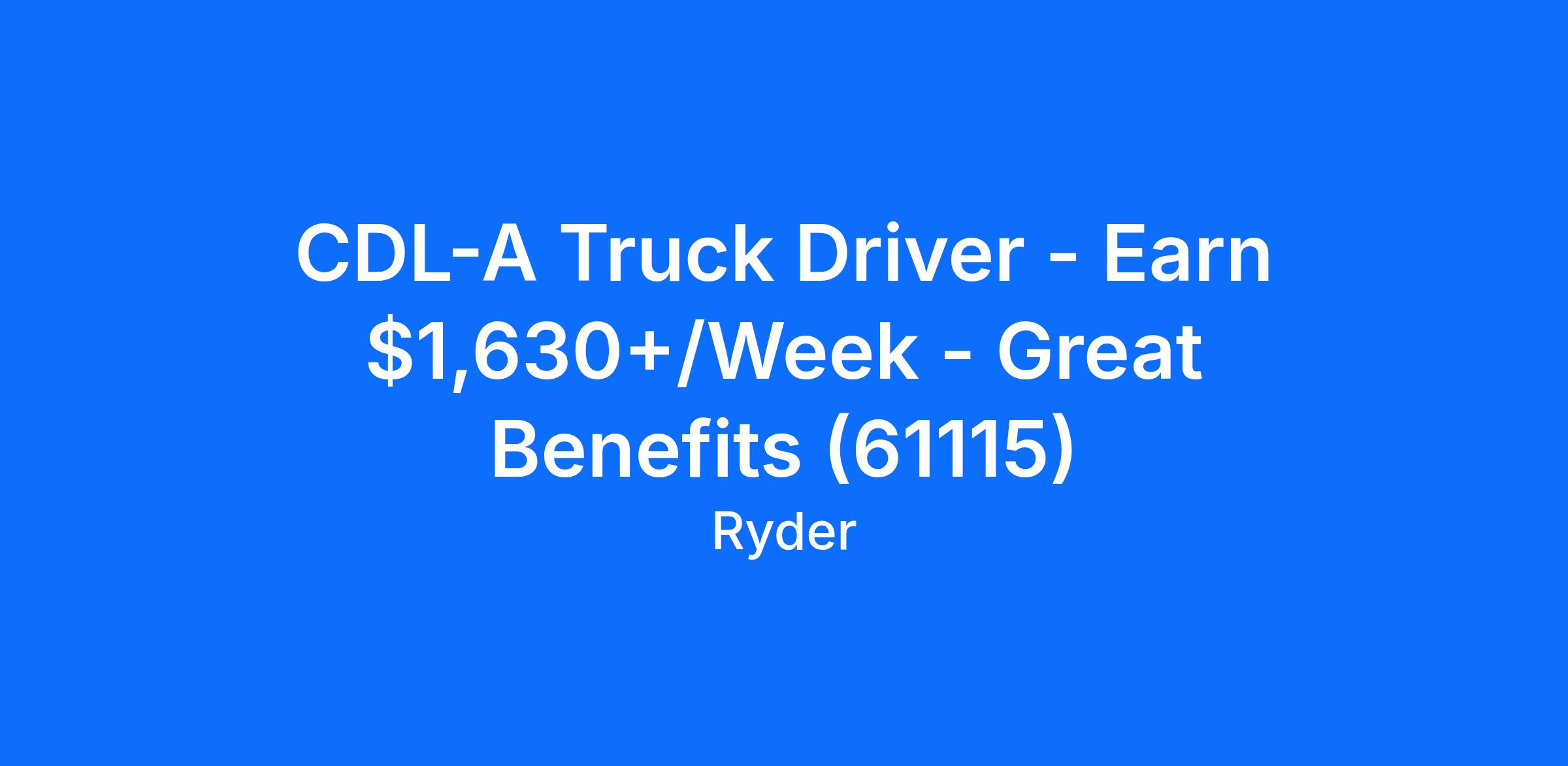 CDL-A Truck Driver - Earn $1,630+/Week - Great Benefits (61115)