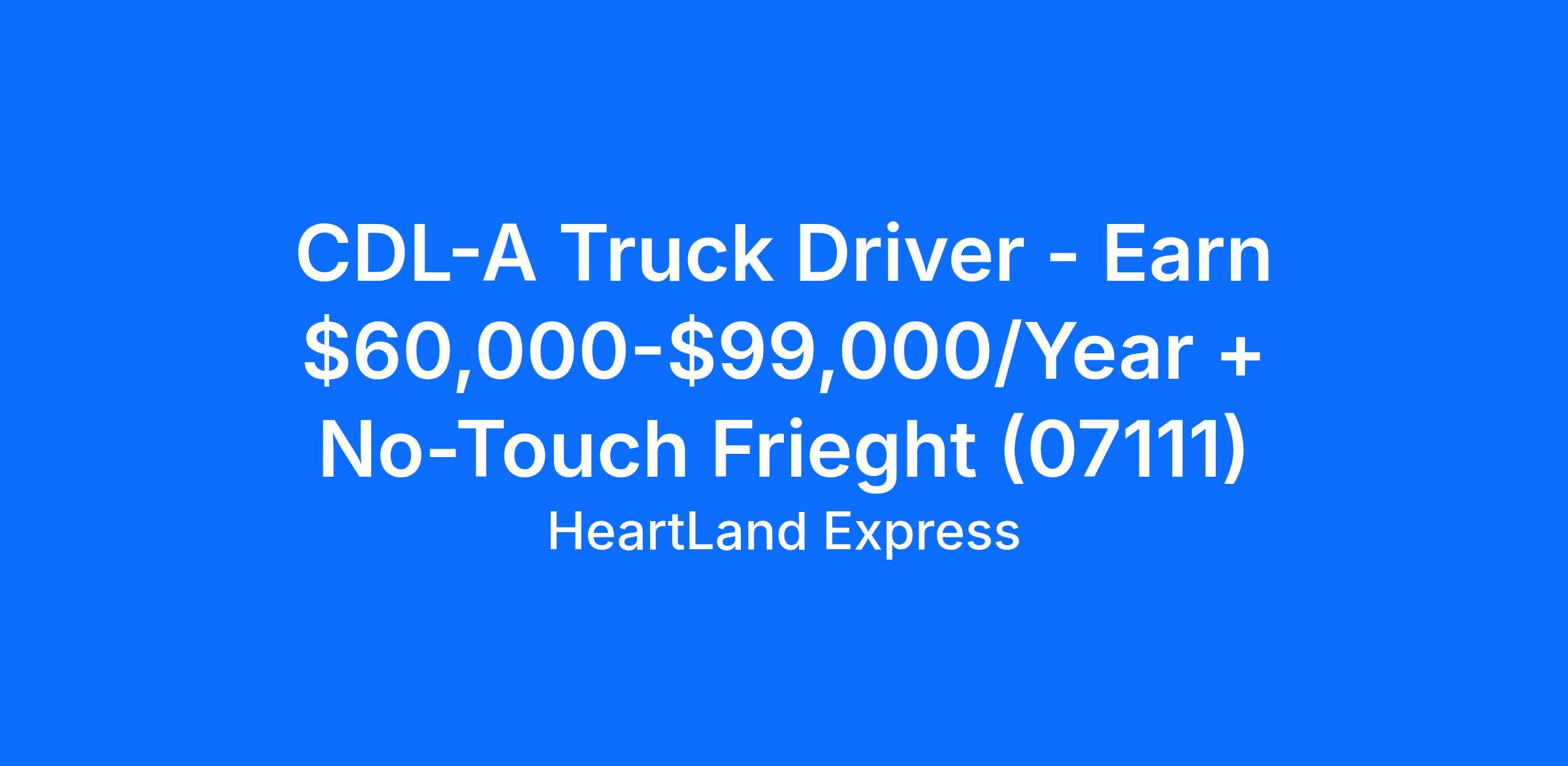 CDL-A Truck Driver - Earn $60,000-$99,000/Year + No-Touch Frieght (07111)