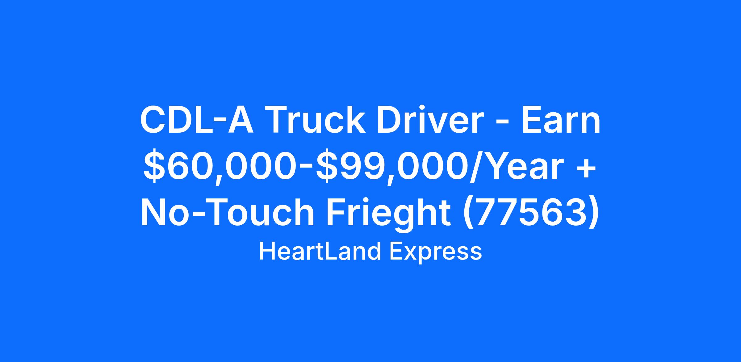 CDL-A Truck Driver - Earn $60,000-$99,000/Year + No-Touch Frieght (77563)