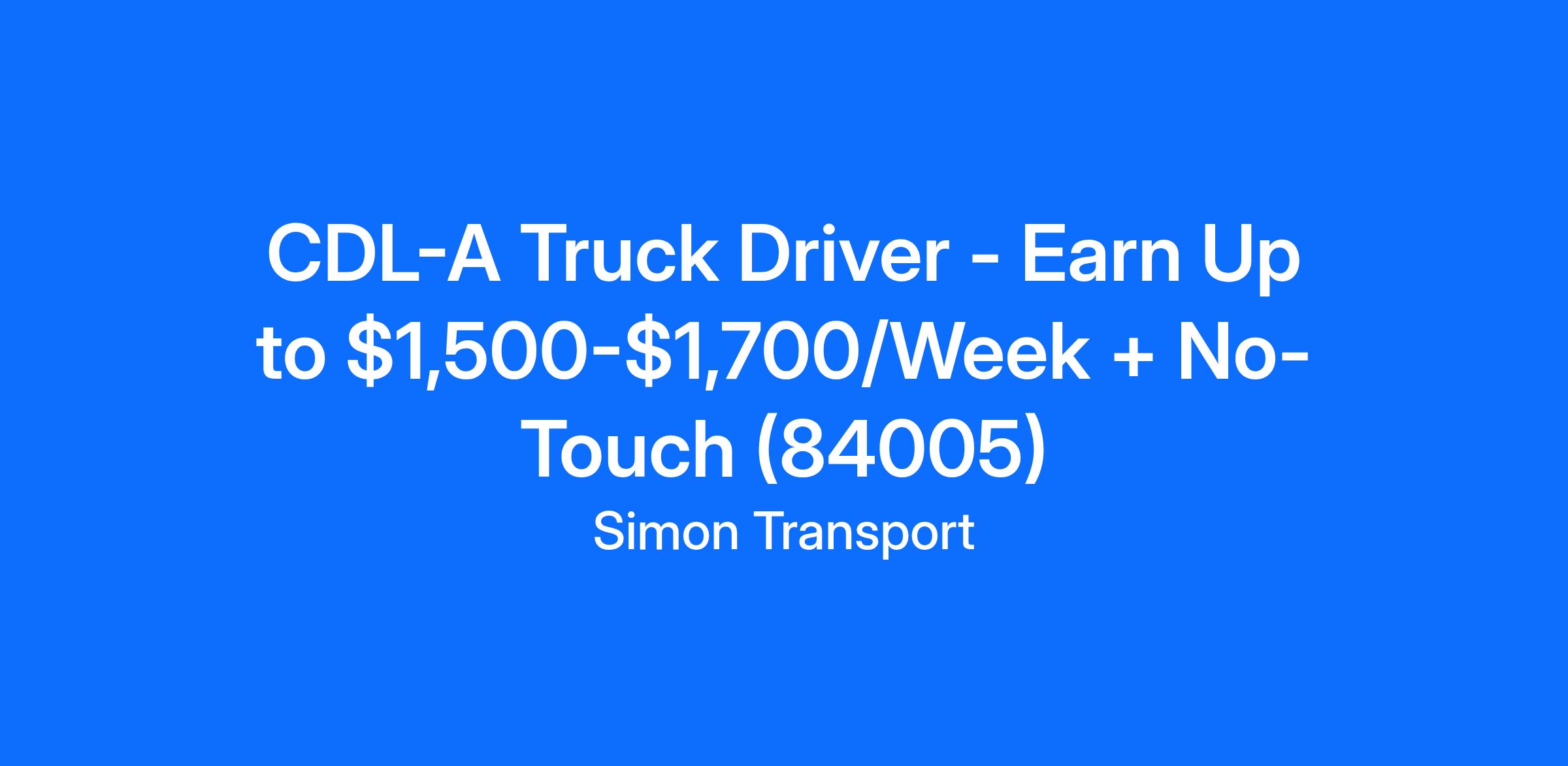 CDL-A Truck Driver - Earn Up to $1,500-$1,700/Week + No-Touch (84005)