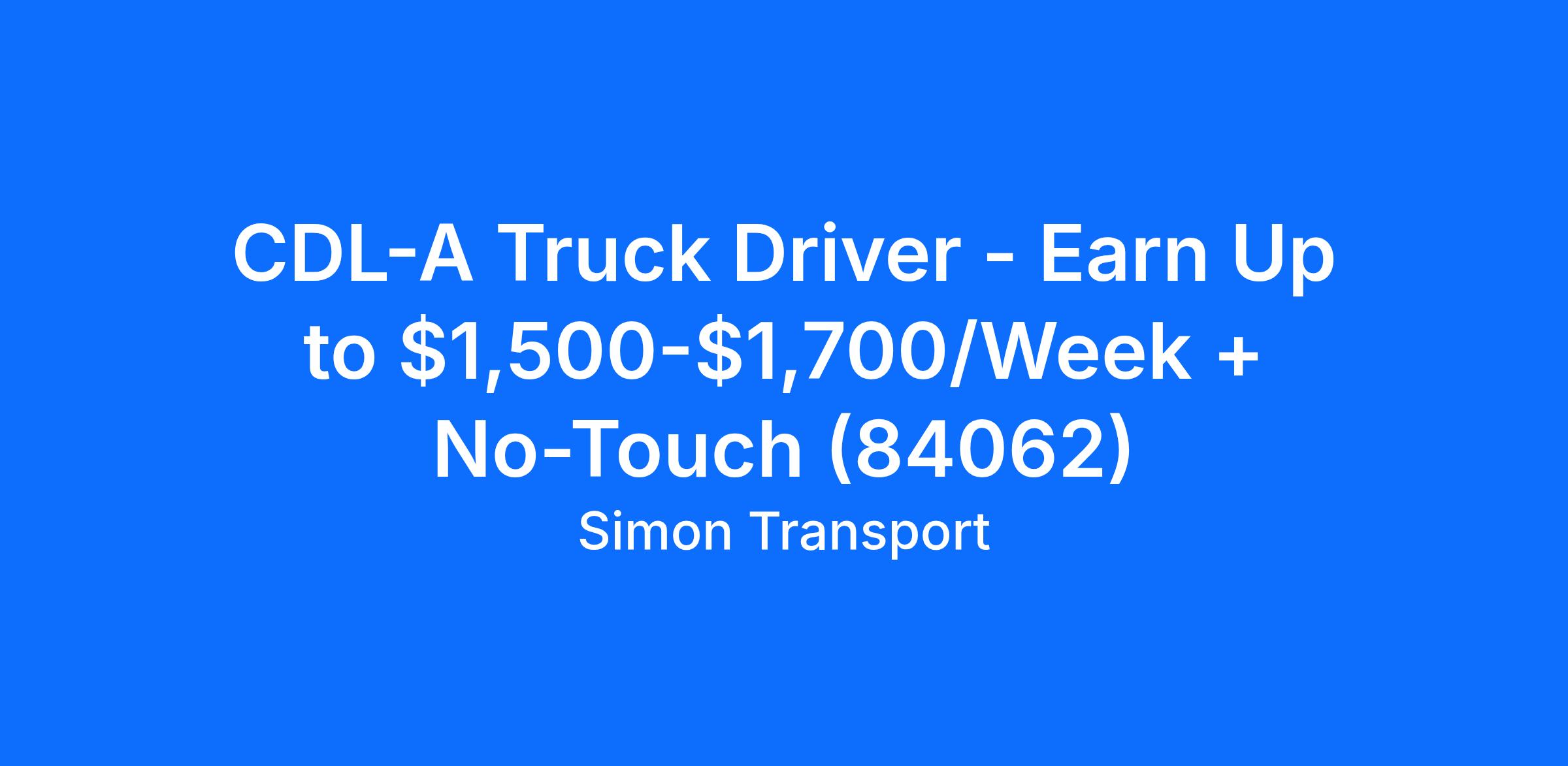 CDL-A Truck Driver - Earn Up to $1,500-$1,700/Week + No-Touch (84062)