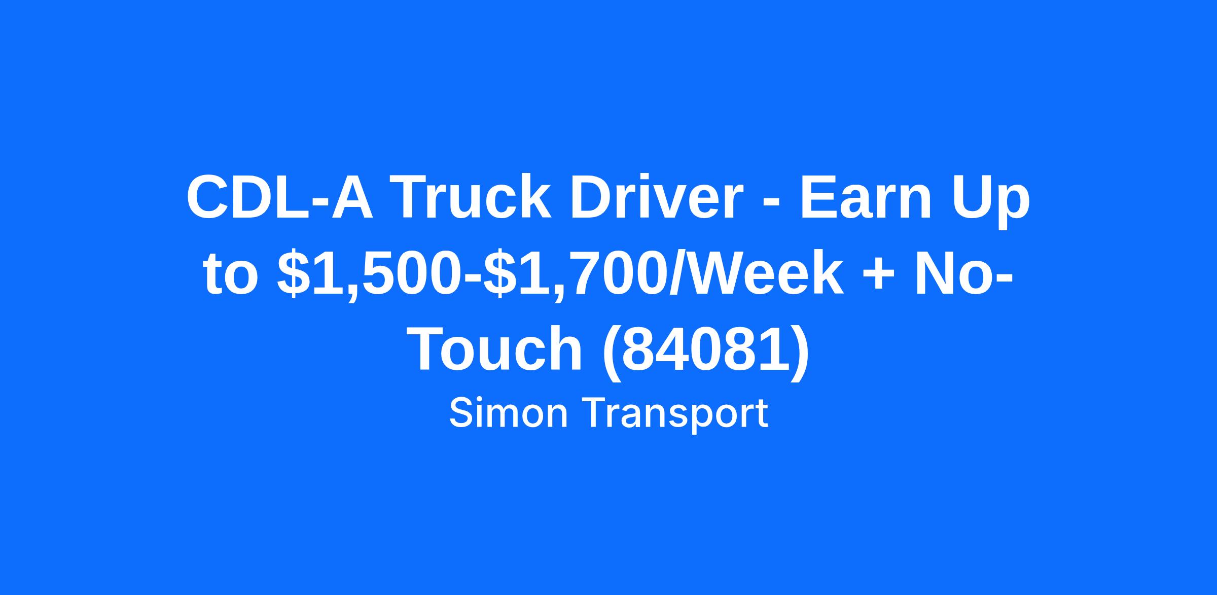 CDL-A Truck Driver - Earn Up to $1,500-$1,700/Week + No-Touch (84081)