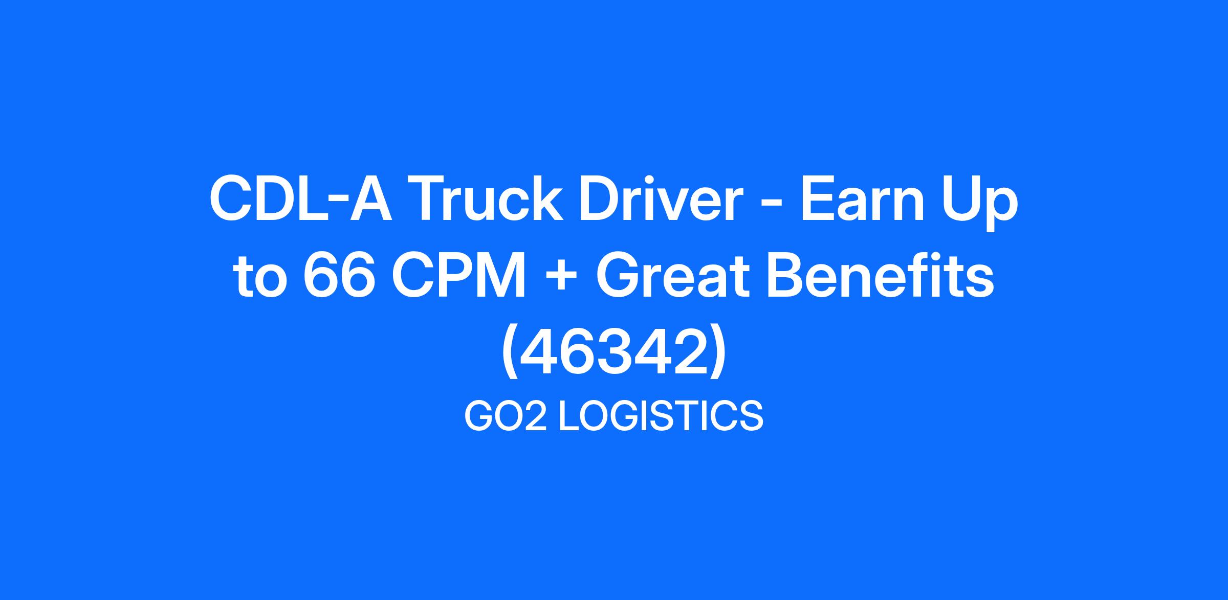 CDL-A Truck Driver - Earn Up to 66 CPM + Great Benefits (46342)